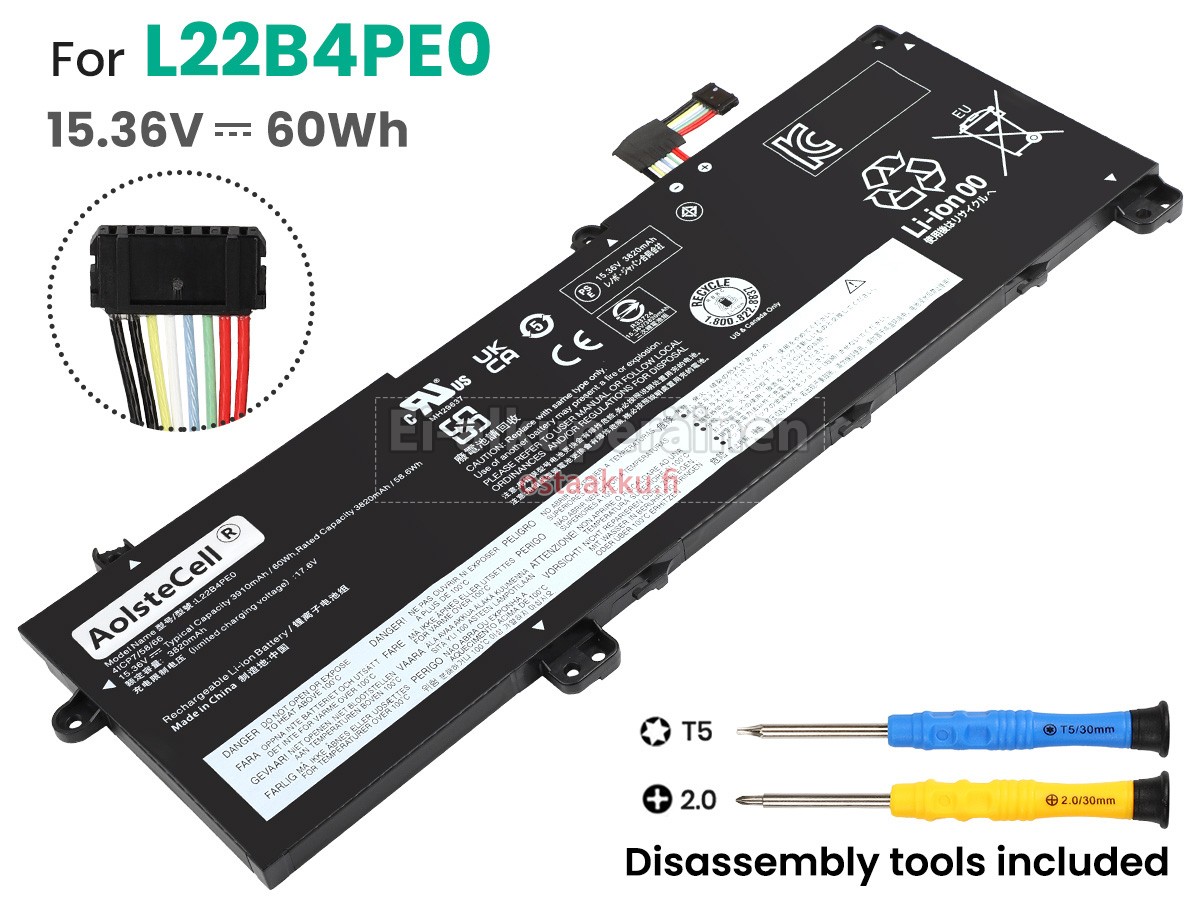 Vaihdettava akku Lenovo L22B4PE0 on uusi. Ehdottomasti ei myydä käytettyjä akku tai uudistettu. Akut ovat valmistettu parhaista solujen ja komponentteja.