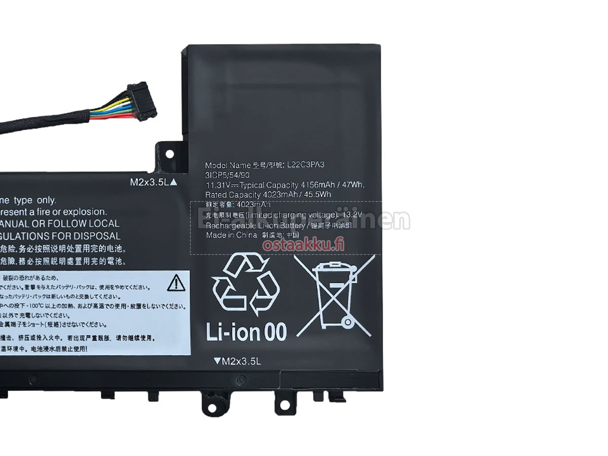 Ei ole suositeltavaa irrottaa akku, jotta voimme jatkaa toimintaansa ja et menetä tietoja äkillisen sähkökatkoksen. Jos haluat poistaa, on suositeltavaa pakata Lenovo L22D3PA3 akun muovilla ja laita se kuivassa, viileässä paikassa, ja muista käyttää ja ladata akku vähintään kerran kuukaudessa, jotta vältetään aktiivisuuden menetystä.