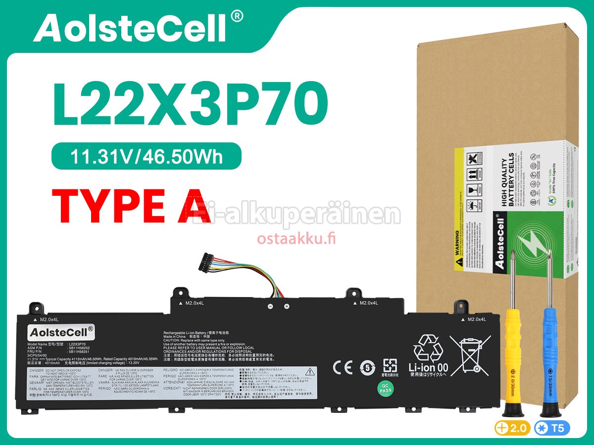 Varaenergian akku uusi Lenovo L22M3P70 valmistetaan hienoimmista solujen ja komponentteja. Lenovo L22M3P70 akku säädetään in abc.com hyväksytyn UN38.3, RCM, CE, UL, ROHS, ISO9001/ISO9002 ja muiden kansainvälisten sertifiointia. Jotta voidaan minimoida mahdollinen turvallisuusriski ja varmistaa hyvän käyttäjäkokemuksen, tarjotaan erilaisia suojatoimia Lenovo L22M3P70 Kannettavani akku kuten lämpösuojaus, virtapiirin suojaus, ylijännitesuojaus, laitteiston suojaus ja kynnyksen lähtövirran.