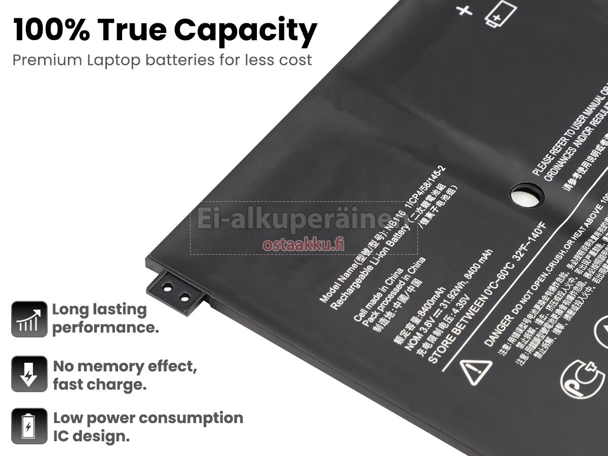 Ei muita eroja, paitsi ilman akku tuotemerkkiä. Kaikki akkuja ovat saatavilla in ostaakku.fi valmiustilassa paristot alkuperäisiä valmistajia. Hyväksyy ytimet ja älykäs soluja, kuten alkuperäisiä valmistajia, joten suorituskyky ja yhteensopivuus Lenovo NB116 akku on samanlainen kuin alkuperäisen akku ja paremmin. Tämä vähentää palkkion brändistä, varmistaa laadun. Monet asiakkaat ajattelevat, että alkuperäinen akku on parempi suorituskyky. Itse asiassa, kannettavani akkuja tuotemerkkejä ovat myös monet kolmannen osapuolen komponentteja (kuten Samsung, LG, jne). Kuten Kannettavani keskusyksikkö, brändin oma tietokoneyritys ei ole sitä kehittänyt.