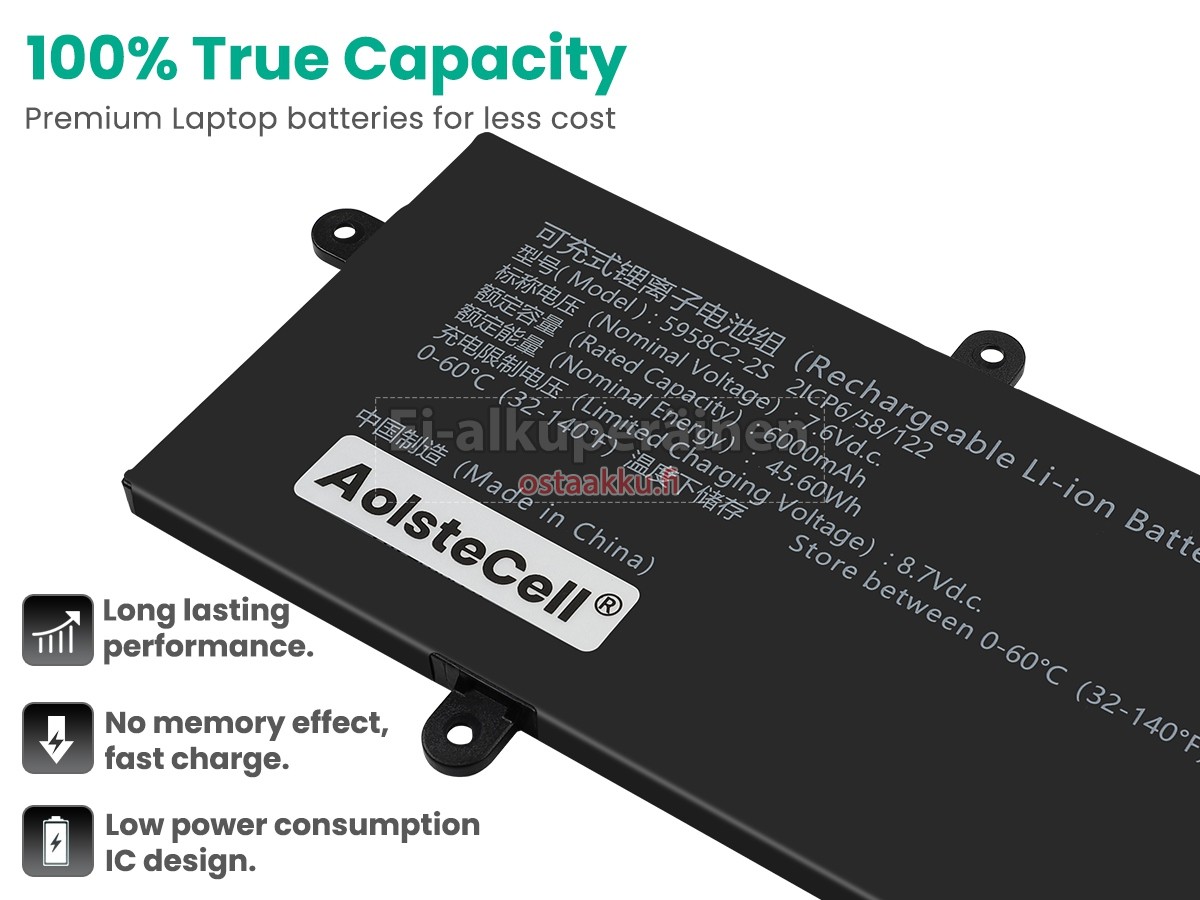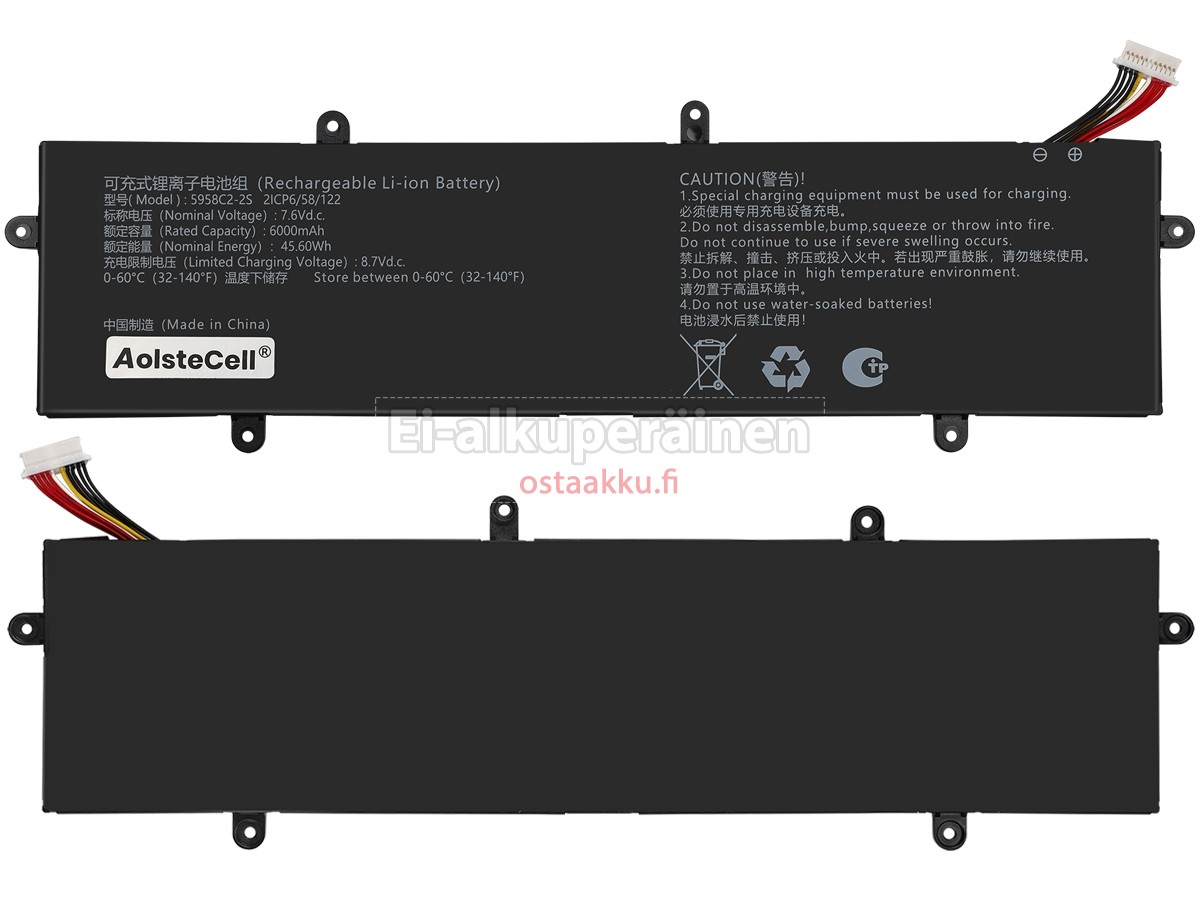Vaihdettava akku Mechrevo 5958C2-2S on uusi. Ehdottomasti ei myydä käytettyjä akku tai uudistettu. Akut ovat valmistettu parhaista solujen ja komponentteja.