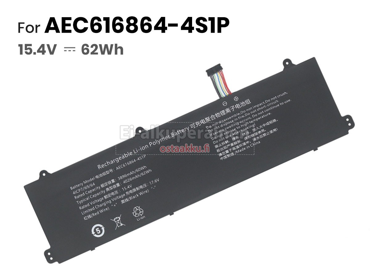 Vaihdettava akku Mechrevo AEC616864-4S1P on uusi. Ehdottomasti ei myydä käytettyjä akku tai uudistettu. Akut ovat valmistettu parhaista solujen ja komponentteja.