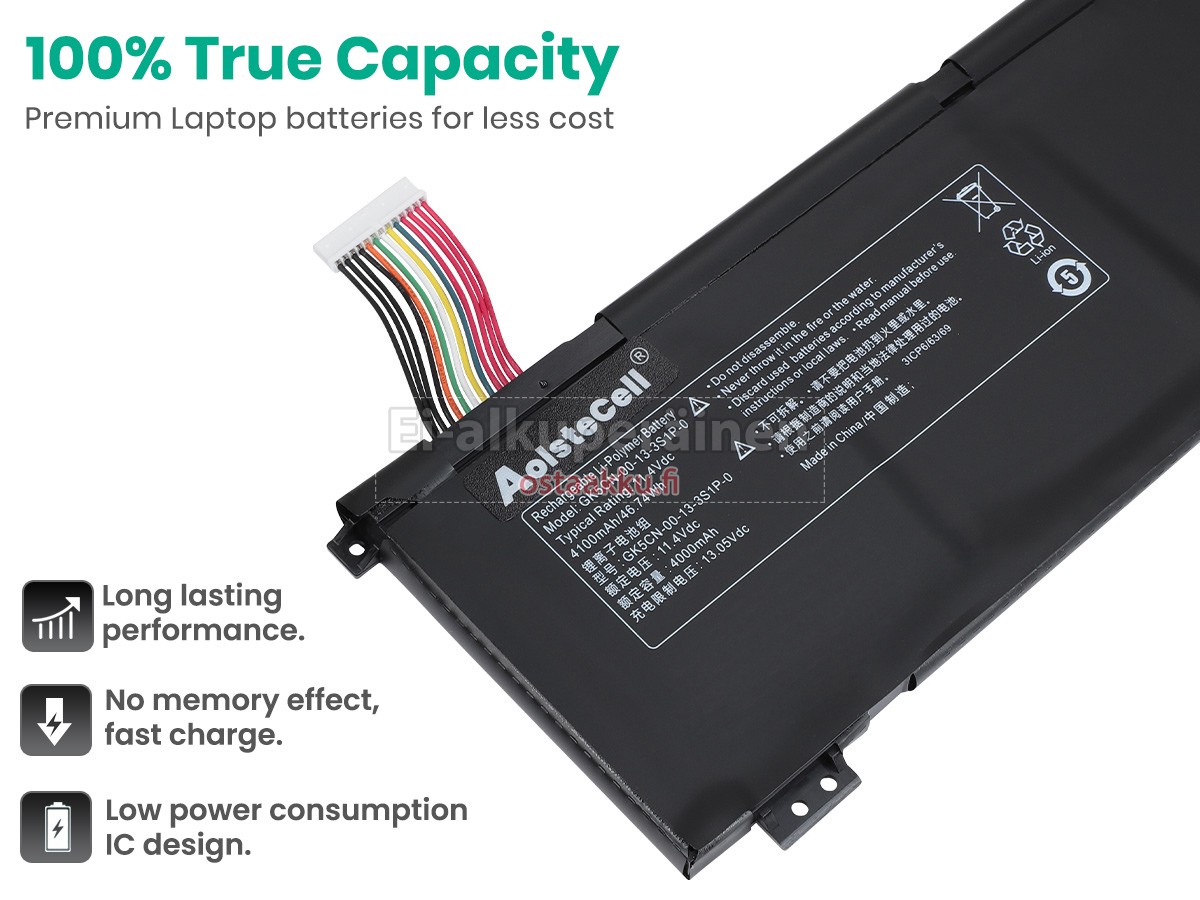 Vaihdettava akku Mechrevo GK5CN-00-13-4S1P on uusi. Ehdottomasti ei myydä käytettyjä akku tai uudistettu. Akut ovat valmistettu parhaista solujen ja komponentteja.