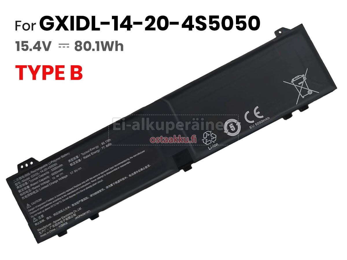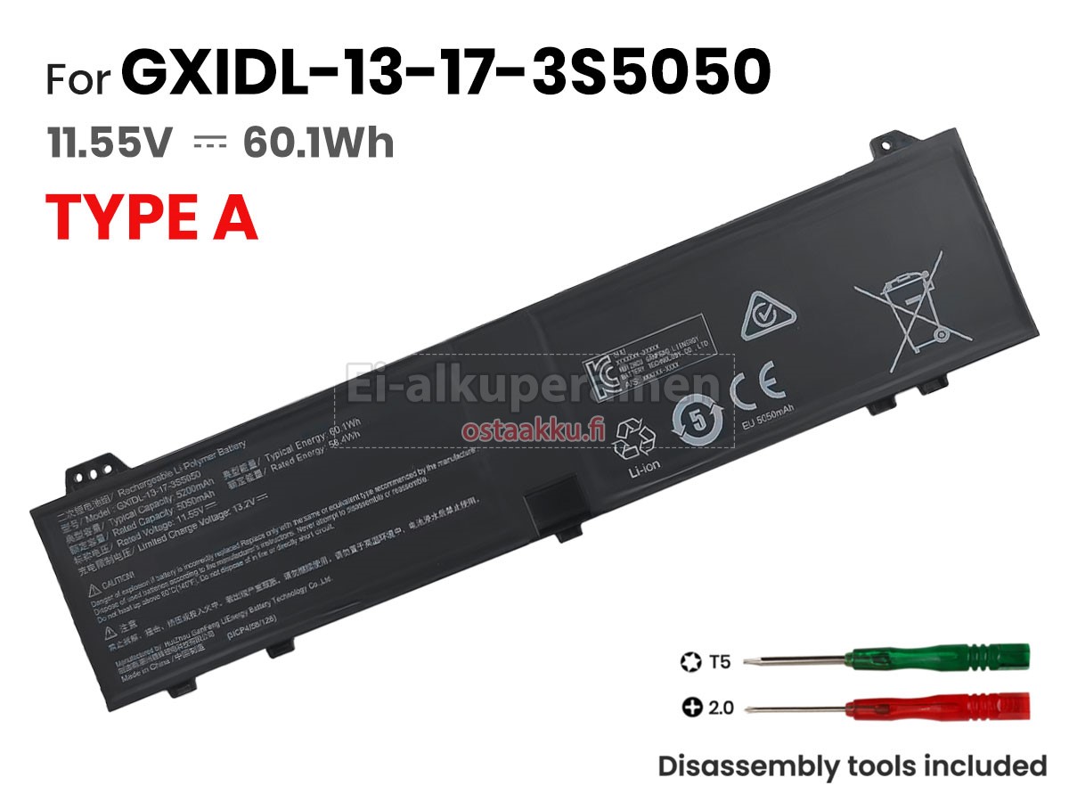 Ei ole suositeltavaa irrottaa akku, jotta voimme jatkaa toimintaansa ja et menetä tietoja äkillisen sähkökatkoksen. Jos haluat poistaa, on suositeltavaa pakata Mechrevo GXIDL-13-17-3S5050 akun muovilla ja laita se kuivassa, viileässä paikassa, ja muista käyttää ja ladata akku vähintään kerran kuukaudessa, jotta vältetään aktiivisuuden menetystä.