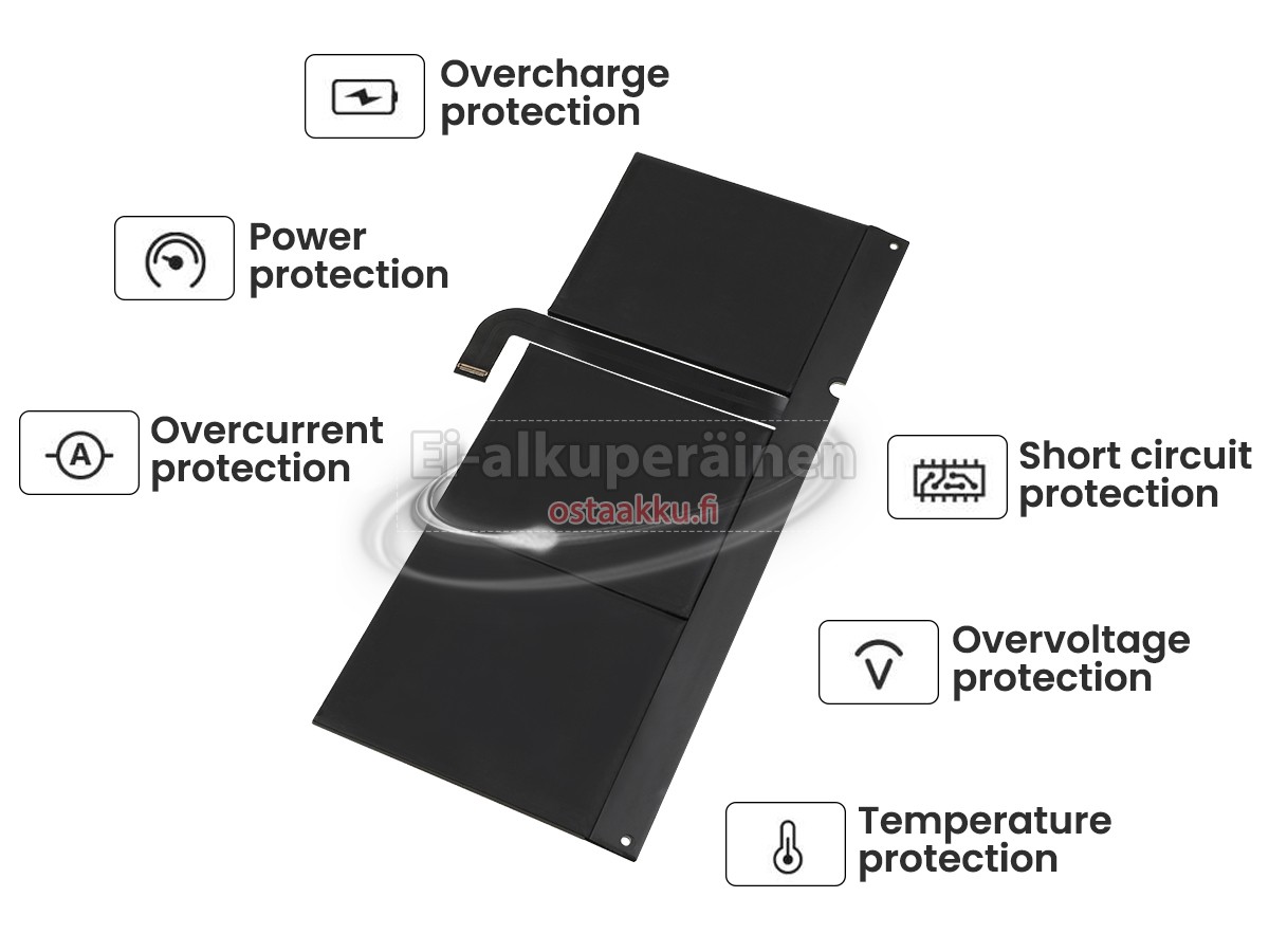 Varaenergian akku uusi Microsoft DYNC01 valmistetaan hienoimmista solujen ja komponentteja. Microsoft DYNC01 akku säädetään in abc.com hyväksytyn UN38.3, RCM, CE, UL, ROHS, ISO9001/ISO9002 ja muiden kansainvälisten sertifiointia. Jotta voidaan minimoida mahdollinen turvallisuusriski ja varmistaa hyvän käyttäjäkokemuksen, tarjotaan erilaisia suojatoimia Microsoft DYNC01 Kannettavani akku kuten lämpösuojaus, virtapiirin suojaus, ylijännitesuojaus, laitteiston suojaus ja kynnyksen lähtövirran.