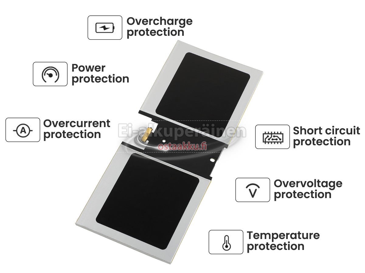 Varaenergian akku uusi Microsoft G16QA043H valmistetaan hienoimmista solujen ja komponentteja. Microsoft G16QA043H akku säädetään in abc.com hyväksytyn UN38.3, RCM, CE, UL, ROHS, ISO9001/ISO9002 ja muiden kansainvälisten sertifiointia. Jotta voidaan minimoida mahdollinen turvallisuusriski ja varmistaa hyvän käyttäjäkokemuksen, tarjotaan erilaisia suojatoimia Microsoft G16QA043H Kannettavani akku kuten lämpösuojaus, virtapiirin suojaus, ylijännitesuojaus, laitteiston suojaus ja kynnyksen lähtövirran.