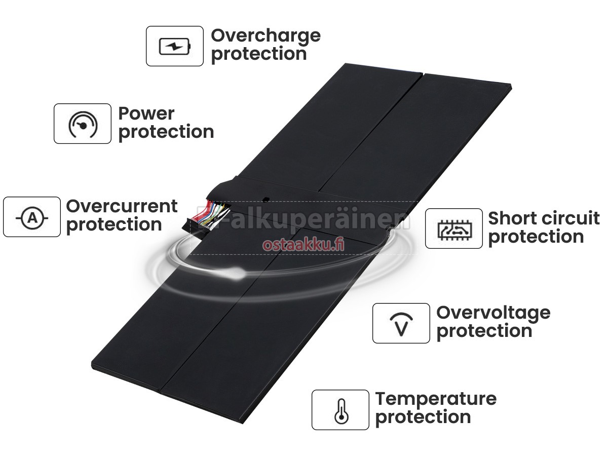 Varaenergian akku uusi Microsoft G3HTA061H valmistetaan hienoimmista solujen ja komponentteja. Microsoft G3HTA061H akku säädetään in abc.com hyväksytyn UN38.3, RCM, CE, UL, ROHS, ISO9001/ISO9002 ja muiden kansainvälisten sertifiointia. Jotta voidaan minimoida mahdollinen turvallisuusriski ja varmistaa hyvän käyttäjäkokemuksen, tarjotaan erilaisia suojatoimia Microsoft G3HTA061H Kannettavani akku kuten lämpösuojaus, virtapiirin suojaus, ylijännitesuojaus, laitteiston suojaus ja kynnyksen lähtövirran.