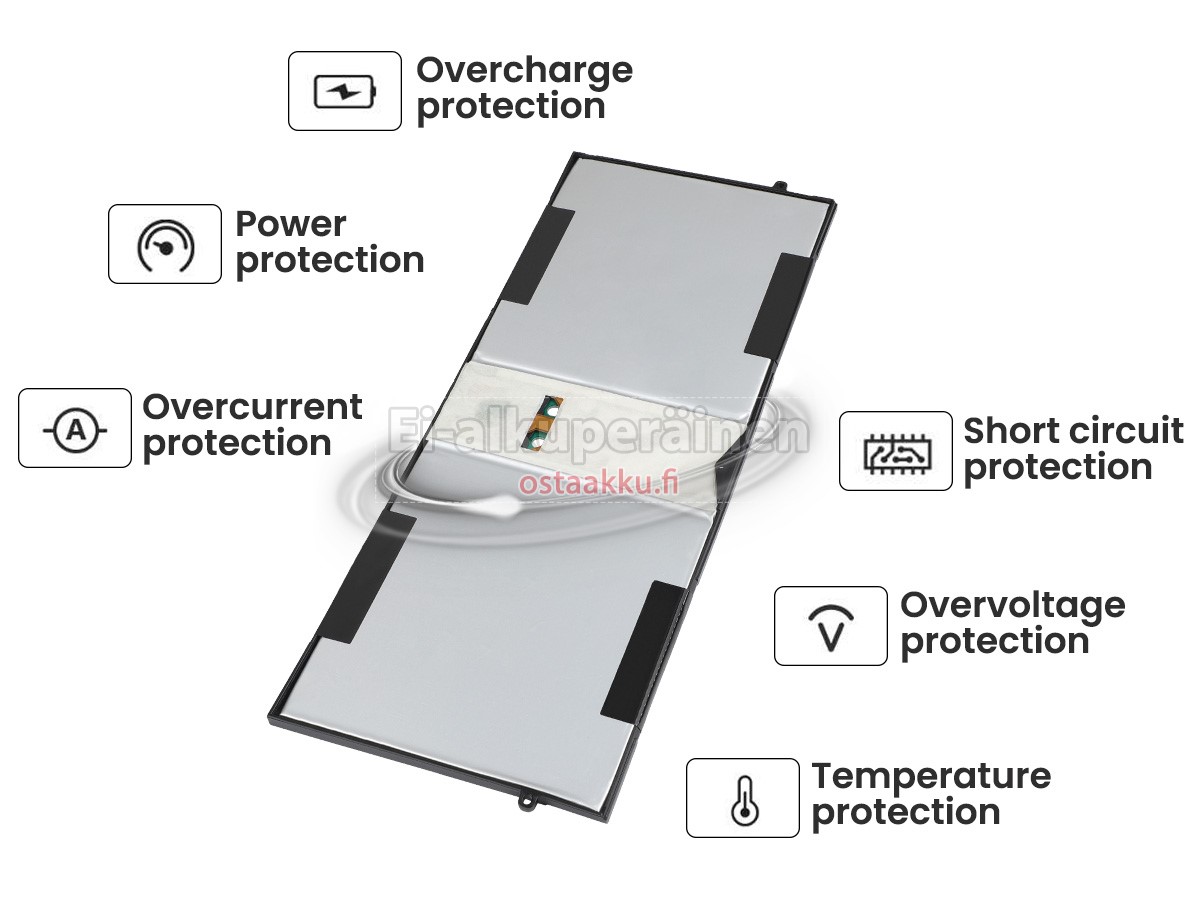 Varaenergian akku uusi Microsoft P21GU9 valmistetaan hienoimmista solujen ja komponentteja. Microsoft P21GU9 akku säädetään in abc.com hyväksytyn UN38.3, RCM, CE, UL, ROHS, ISO9001/ISO9002 ja muiden kansainvälisten sertifiointia. Jotta voidaan minimoida mahdollinen turvallisuusriski ja varmistaa hyvän käyttäjäkokemuksen, tarjotaan erilaisia suojatoimia Microsoft P21GU9 Kannettavani akku kuten lämpösuojaus, virtapiirin suojaus, ylijännitesuojaus, laitteiston suojaus ja kynnyksen lähtövirran.