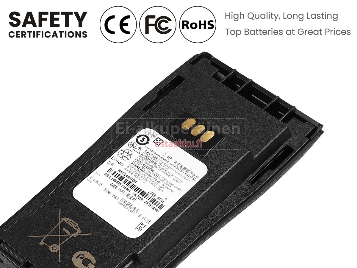 Vaihdettava akku Motorola NNTN4497AR on uusi. Ehdottomasti ei myydä käytettyjä akku tai uudistettu. Akut ovat valmistettu parhaista solujen ja komponentteja.
