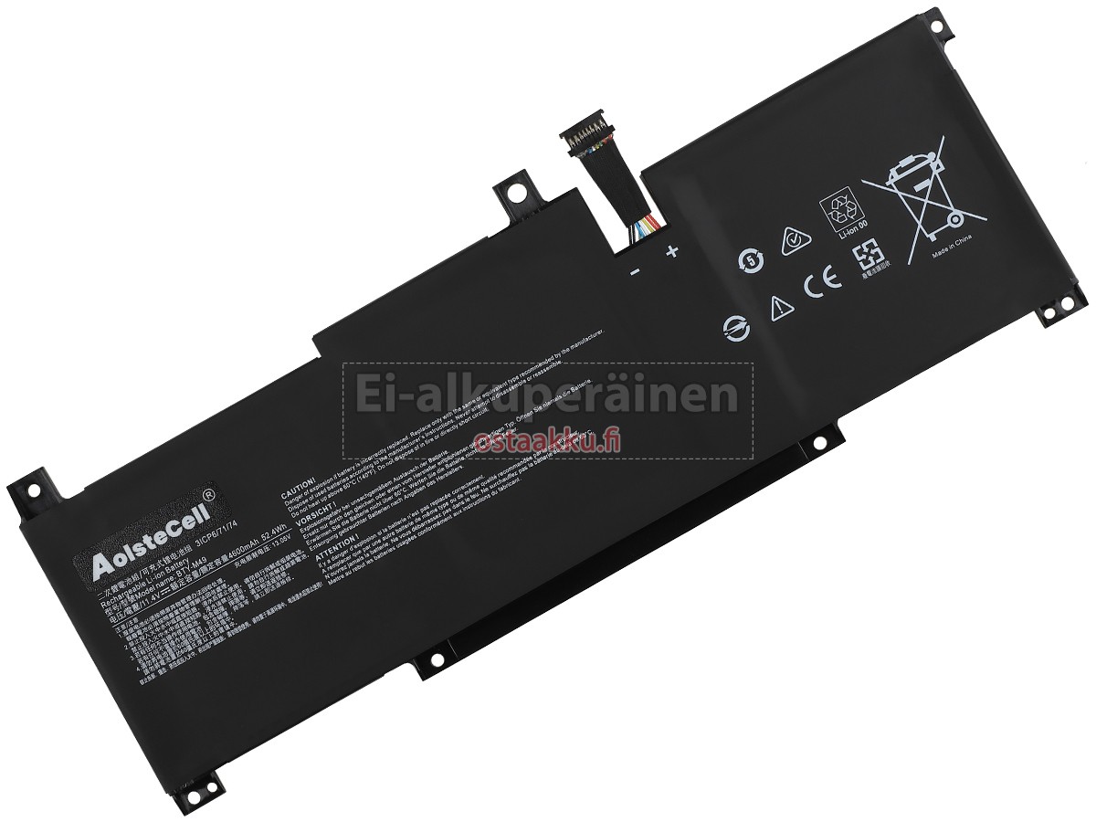 Vaihdettava akku MSI BTY-M493 on uusi. Ehdottomasti ei myydä käytettyjä akku tai uudistettu. Akut ovat valmistettu parhaista solujen ja komponentteja.