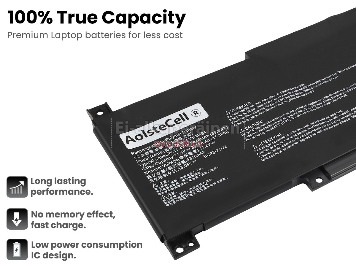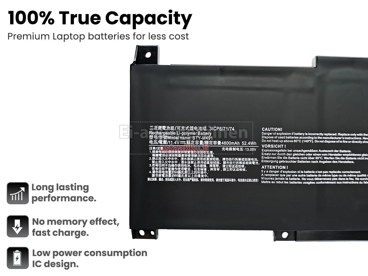 Vaihdettava akku MSI BTY-M494 on uusi. Ehdottomasti ei myydä käytettyjä akku tai uudistettu. Akut ovat valmistettu parhaista solujen ja komponentteja.