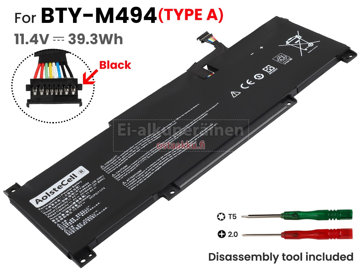 Ei ole suositeltavaa irrottaa akku, jotta voimme jatkaa toimintaansa ja et menetä tietoja äkillisen sähkökatkoksen. Jos haluat poistaa, on suositeltavaa pakata MSI BTY-M494 akun muovilla ja laita se kuivassa, viileässä paikassa, ja muista käyttää ja ladata akku vähintään kerran kuukaudessa, jotta vältetään aktiivisuuden menetystä.