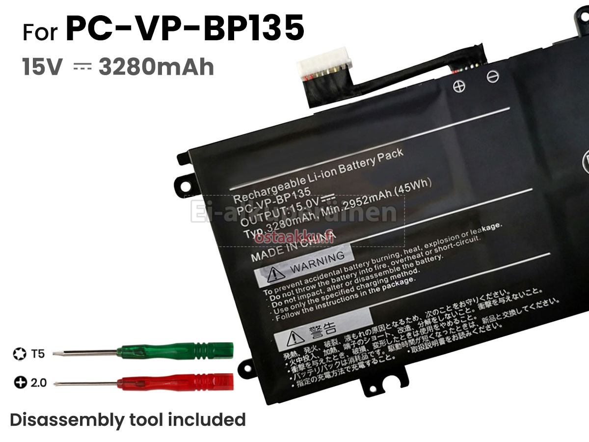 Ei ole suositeltavaa irrottaa akku, jotta voimme jatkaa toimintaansa ja et menetä tietoja äkillisen sähkökatkoksen. Jos haluat poistaa, on suositeltavaa pakata NEC PC-VP-BP135 akun muovilla ja laita se kuivassa, viileässä paikassa, ja muista käyttää ja ladata akku vähintään kerran kuukaudessa, jotta vältetään aktiivisuuden menetystä.