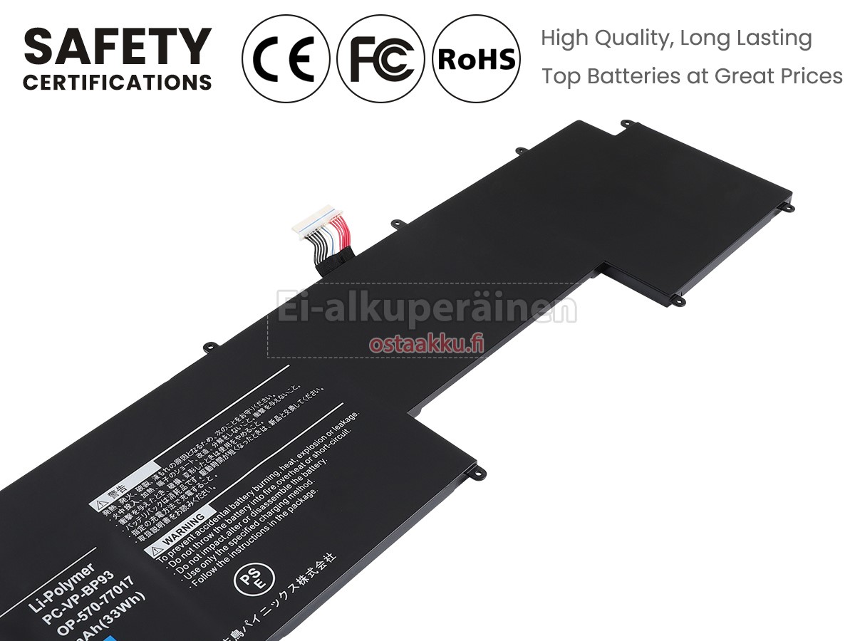 Varaenergian akku uusi NEC PC-VP-BP93 valmistetaan hienoimmista solujen ja komponentteja. NEC PC-VP-BP93 akku säädetään in abc.com hyväksytyn UN38.3, RCM, CE, UL, ROHS, ISO9001/ISO9002 ja muiden kansainvälisten sertifiointia. Jotta voidaan minimoida mahdollinen turvallisuusriski ja varmistaa hyvän käyttäjäkokemuksen, tarjotaan erilaisia suojatoimia NEC PC-VP-BP93 Kannettavani akku kuten lämpösuojaus, virtapiirin suojaus, ylijännitesuojaus, laitteiston suojaus ja kynnyksen lähtövirran.