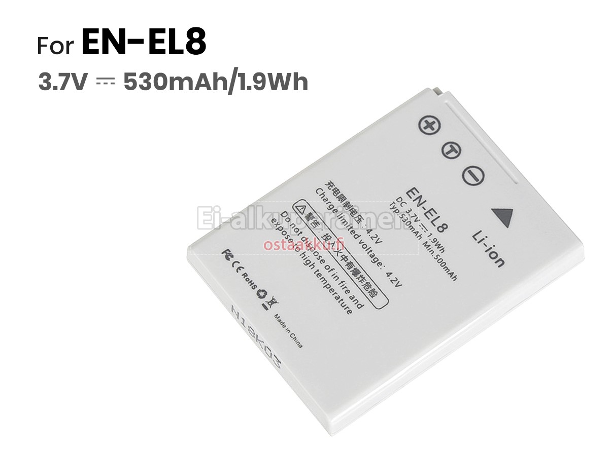 Vaihdettava akku Nikon COOLPIX S1 on uusi. Ehdottomasti ei myydä käytettyjä akku tai uudistettu. Akut ovat valmistettu parhaista solujen ja komponentteja.