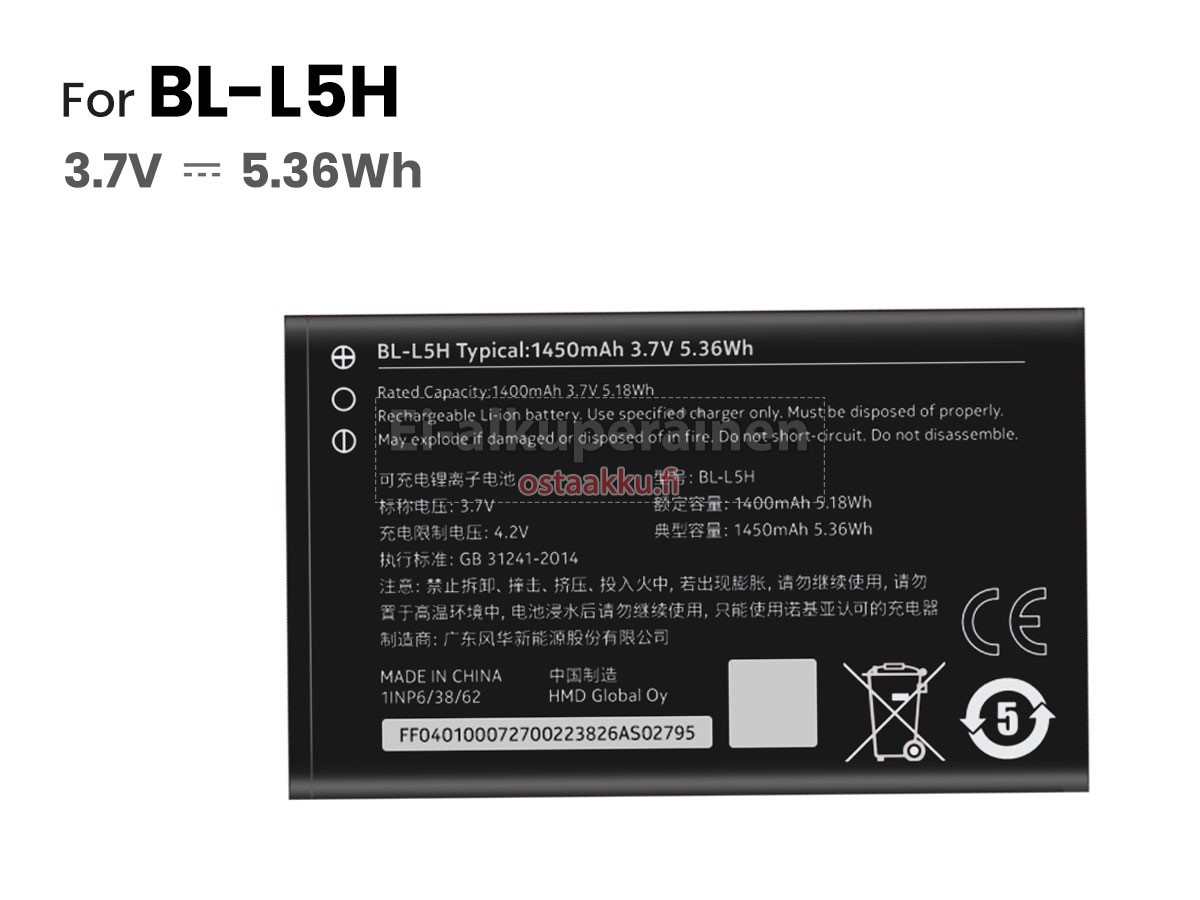 Varaenergian akku uusi Nokia 110 4G valmistetaan hienoimmista solujen ja komponentteja. Nokia 110 4G akku säädetään in abc.com hyväksytyn UN38.3, RCM, CE, UL, ROHS, ISO9001/ISO9002 ja muiden kansainvälisten sertifiointia. Jotta voidaan minimoida mahdollinen turvallisuusriski ja varmistaa hyvän käyttäjäkokemuksen, tarjotaan erilaisia suojatoimia Nokia 110 4G akku kuten lämpösuojaus, virtapiirin suojaus, ylijännitesuojaus, laitteiston suojaus ja kynnyksen lähtövirran.