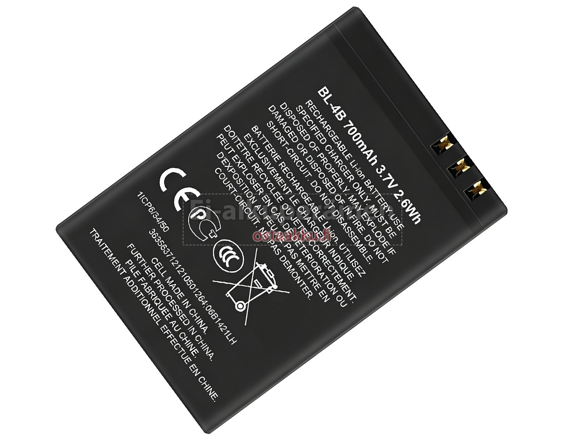 Ei ole suositeltavaa irrottaa akku, jotta voimme jatkaa toimintaansa ja et menetä tietoja äkillisen sähkökatkoksen. Jos haluat poistaa, on suositeltavaa pakata Nokia BL-4BA akun muovilla ja laita se kuivassa, viileässä paikassa, ja muista käyttää ja ladata akku vähintään kerran kuukaudessa, jotta vältetään aktiivisuuden menetystä.