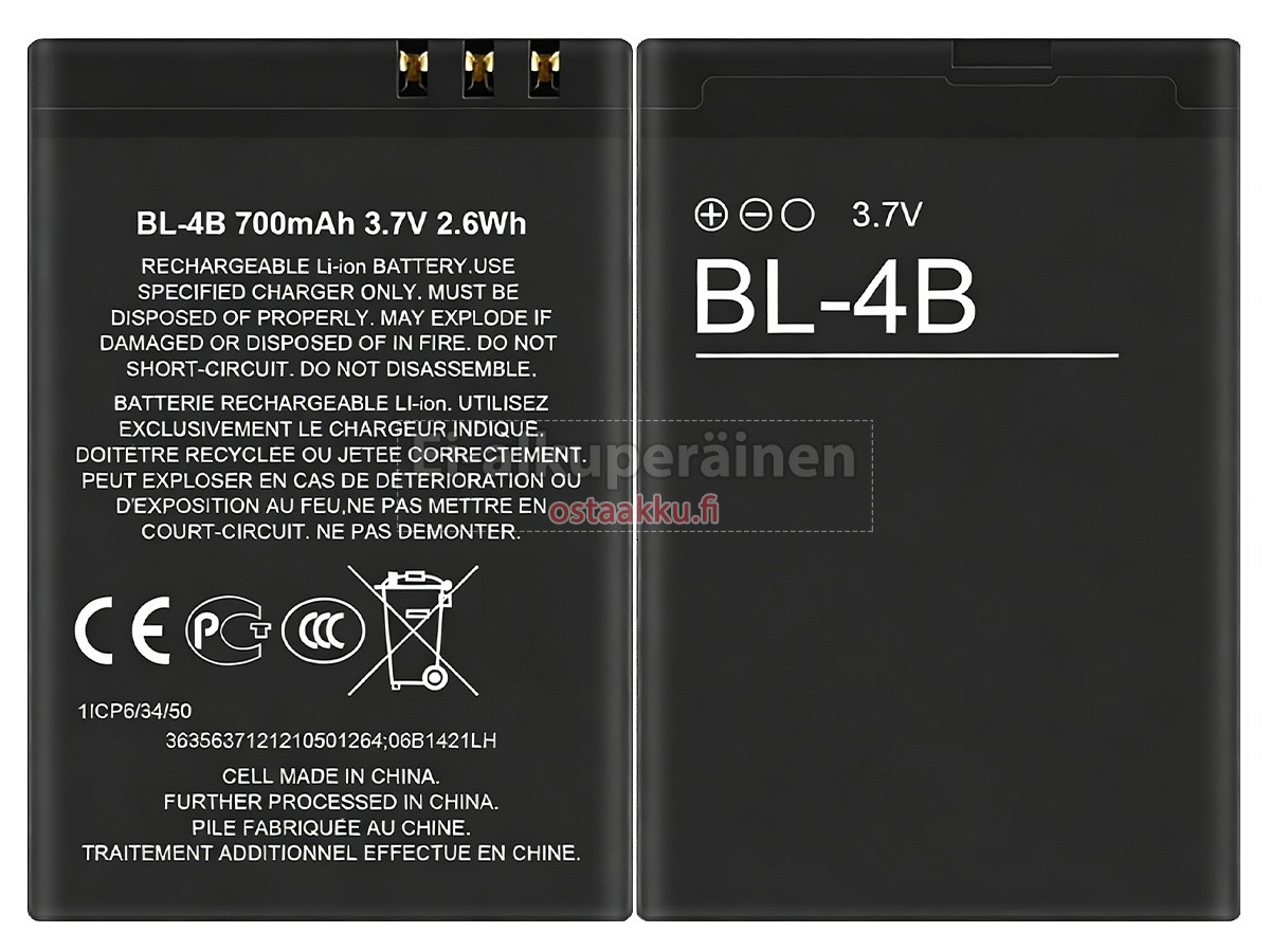 Vaihdettava akku Nokia BL-4BA on uusi. Ehdottomasti ei myydä käytettyjä akku tai uudistettu. Akut ovat valmistettu parhaista solujen ja komponentteja.