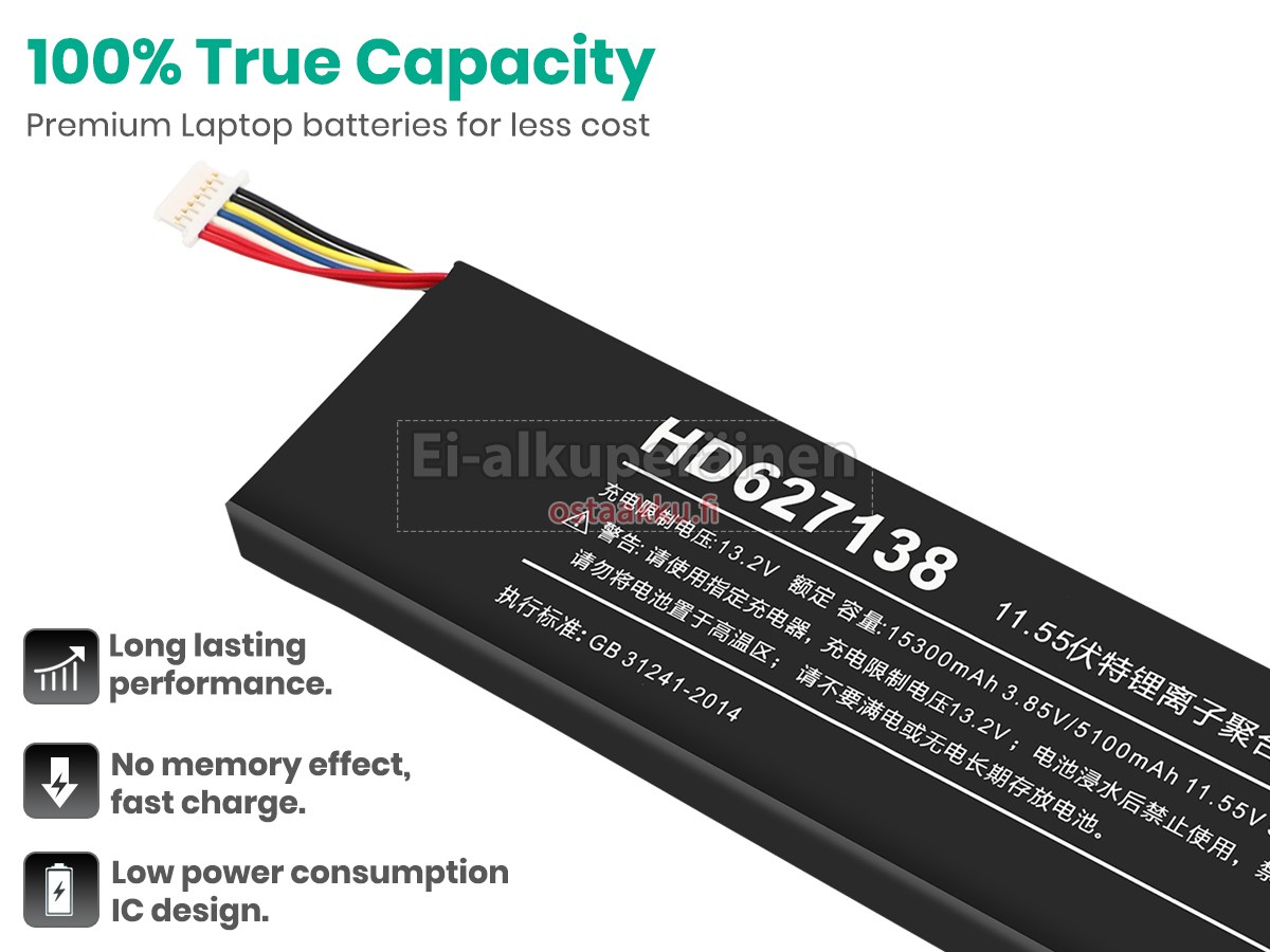 Ei muita eroja, paitsi ilman akku tuotemerkkiä. Kaikki akkuja ovat saatavilla in ostaakku.fi valmiustilassa paristot alkuperäisiä valmistajia. Hyväksyy ytimet ja älykäs soluja, kuten alkuperäisiä valmistajia, joten suorituskyky ja yhteensopivuus One netbook HD627138 akku on samanlainen kuin alkuperäisen akku ja paremmin. Tämä vähentää palkkion brändistä, varmistaa laadun. Monet asiakkaat ajattelevat, että alkuperäinen akku on parempi suorituskyky. Itse asiassa, kannettavani akkuja tuotemerkkejä ovat myös monet kolmannen osapuolen komponentteja (kuten Samsung, LG, jne). Kuten Kannettavani keskusyksikkö, brändin oma tietokoneyritys ei ole sitä kehittänyt.