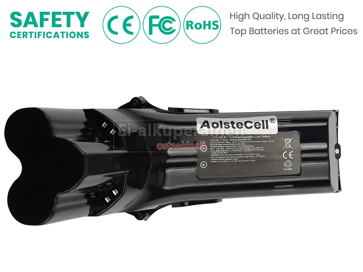 Varaenergian akku uusi Philips 1BD0346A valmistetaan hienoimmista solujen ja komponentteja. Philips 1BD0346A akku säädetään in abc.com hyväksytyn UN38.3, RCM, CE, UL, ROHS, ISO9001/ISO9002 ja muiden kansainvälisten sertifiointia. Jotta voidaan minimoida mahdollinen turvallisuusriski ja varmistaa hyvän käyttäjäkokemuksen, tarjotaan erilaisia suojatoimia Philips 1BD0346A pölynimurin akku kuten lämpösuojaus, virtapiirin suojaus, ylijännitesuojaus, laitteiston suojaus ja kynnyksen lähtövirran.