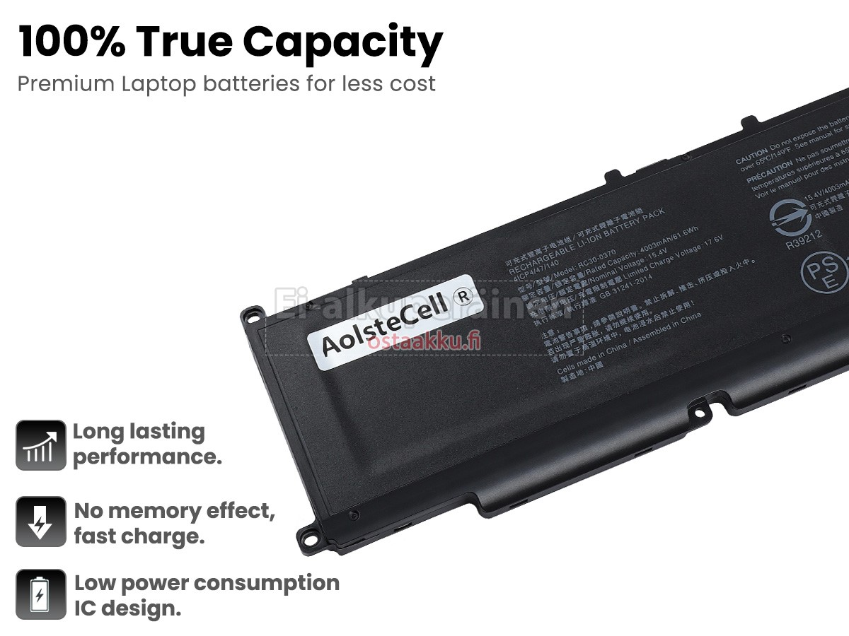 Vaihdettava akku Razer BLADE 14 2021 GEFORCE RTX 3080 on uusi. Ehdottomasti ei myydä käytettyjä akku tai uudistettu. Akut ovat valmistettu parhaista solujen ja komponentteja.