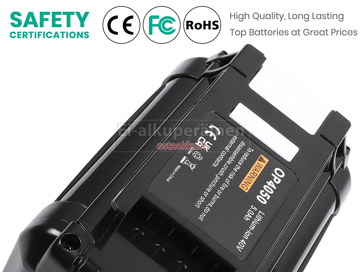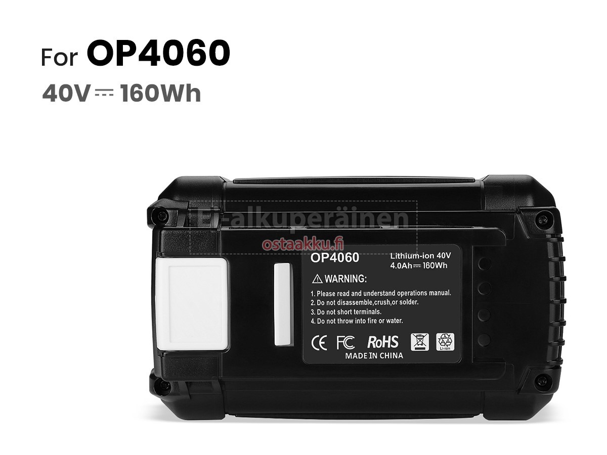 Vaihdettava akku Ryobi OP4050A on uusi. Ehdottomasti ei myydä käytettyjä akku tai uudistettu. Akut ovat valmistettu parhaista solujen ja komponentteja.