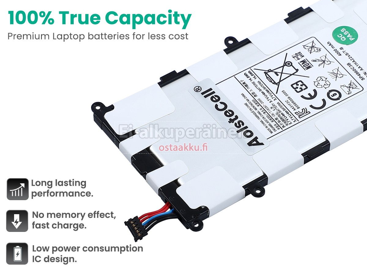 Ei muita eroja, paitsi ilman akku tuotemerkkiä. Kaikki akkuja ovat saatavilla in ostaakku.fi valmiustilassa paristot alkuperäisiä valmistajia. Hyväksyy ytimet ja älykäs soluja, kuten alkuperäisiä valmistajia, joten suorituskyky ja yhteensopivuus Samsung Galaxy TAB P6201 akku on samanlainen kuin alkuperäisen akku ja paremmin. Tämä vähentää palkkion brändistä, varmistaa laadun. Monet asiakkaat ajattelevat, että alkuperäinen akku on parempi suorituskyky. Itse asiassa, kannettavani akkuja tuotemerkkejä ovat myös monet kolmannen osapuolen komponentteja (kuten Samsung, LG, jne). Kuten Kannettavani keskusyksikkö, brändin oma tietokoneyritys ei ole sitä kehittänyt.