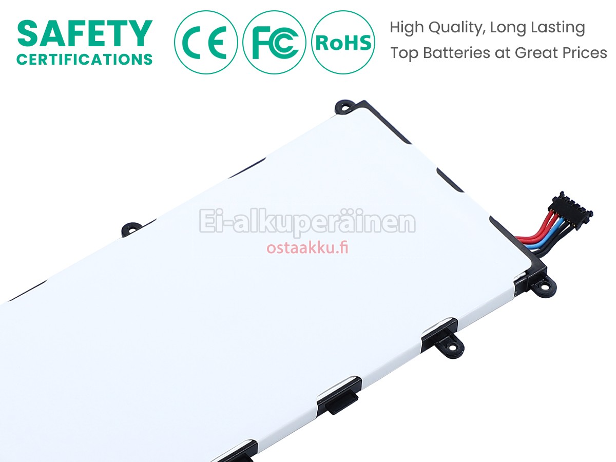 Vaihdettava akku Samsung Galaxy TAB P6201 on uusi. Ehdottomasti ei myydä käytettyjä akku tai uudistettu. Akut ovat valmistettu parhaista solujen ja komponentteja.