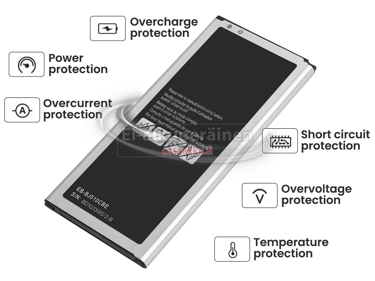 Varaenergian akku uusi Samsung J510 valmistetaan hienoimmista solujen ja komponentteja. Samsung J510 akku säädetään in abc.com hyväksytyn UN38.3, RCM, CE, UL, ROHS, ISO9001/ISO9002 ja muiden kansainvälisten sertifiointia. Jotta voidaan minimoida mahdollinen turvallisuusriski ja varmistaa hyvän käyttäjäkokemuksen, tarjotaan erilaisia suojatoimia Samsung J510 akku kuten lämpösuojaus, virtapiirin suojaus, ylijännitesuojaus, laitteiston suojaus ja kynnyksen lähtövirran.