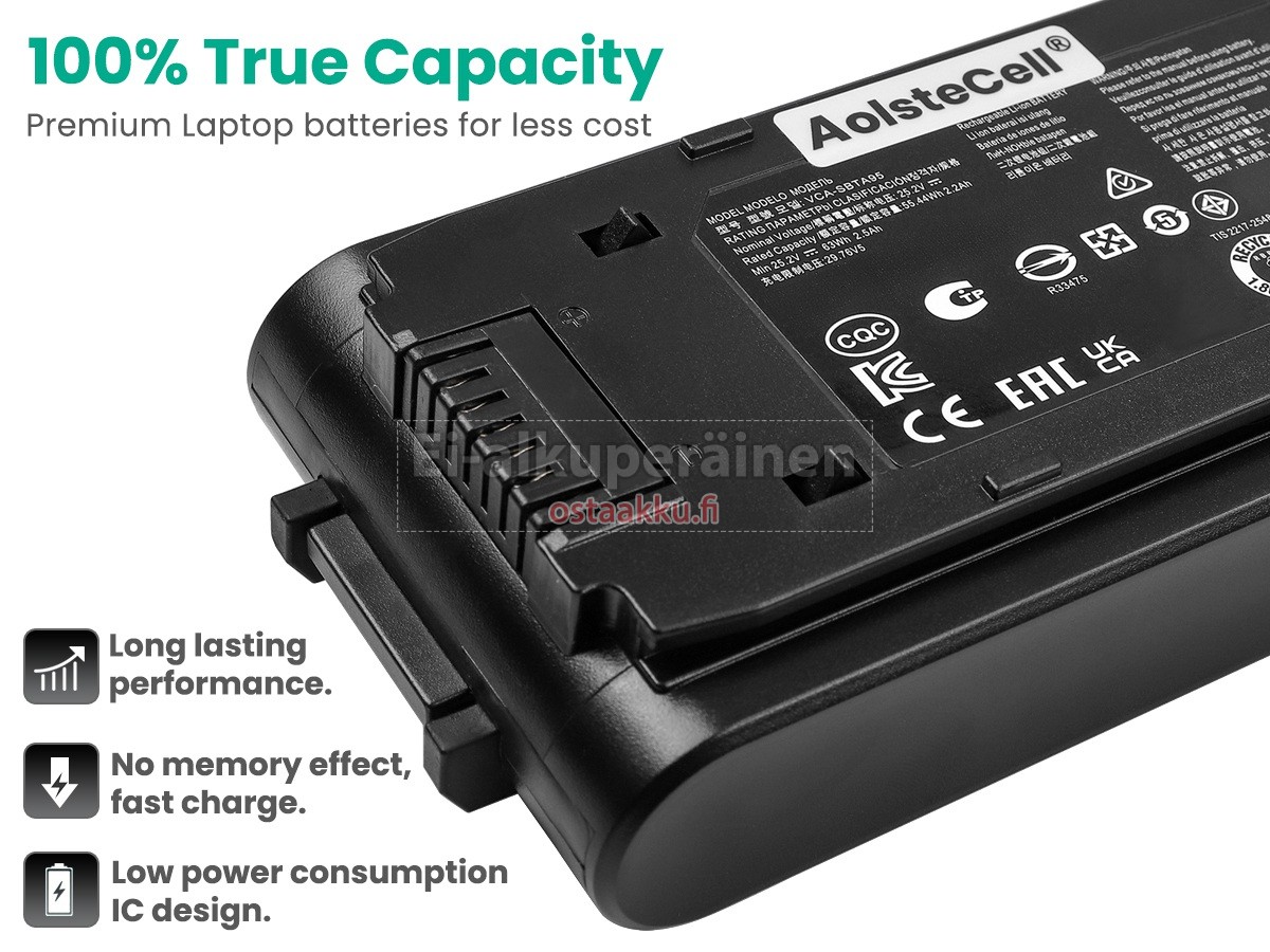Ei muita eroja, paitsi ilman akku tuotemerkkiä. Kaikki akkuja ovat saatavilla in ostaakku.fi valmiustilassa paristot alkuperäisiä valmistajia. Hyväksyy ytimet ja älykäs soluja, kuten alkuperäisiä valmistajia, joten suorituskyky ja yhteensopivuus Samsung VS20A9500AN/AA akku on samanlainen kuin alkuperäisen akku ja paremmin. Tämä vähentää palkkion brändistä, varmistaa laadun. Monet asiakkaat ajattelevat, että alkuperäinen akku on parempi suorituskyky. Itse asiassa, pölynimurin akkuja tuotemerkkejä ovat myös monet kolmannen osapuolen komponentteja (kuten Samsung, LG, jne). Kuten pölynimurin keskusyksikkö, brändin oma tietokoneyritys ei ole sitä kehittänyt.