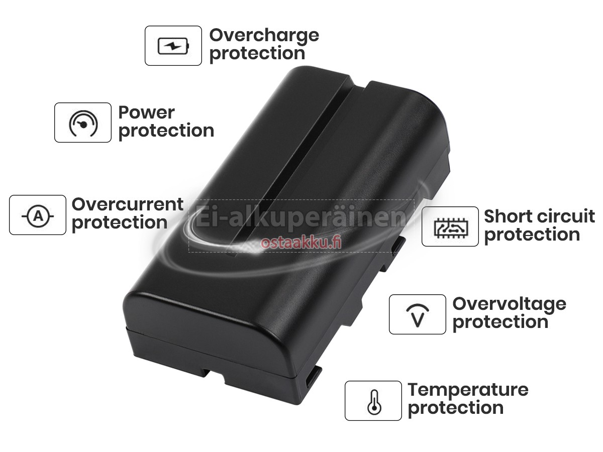 Varaenergian akku uusi Sony NP-F570 valmistetaan hienoimmista solujen ja komponentteja. Sony NP-F570 akku säädetään in abc.com hyväksytyn UN38.3, RCM, CE, UL, ROHS, ISO9001/ISO9002 ja muiden kansainvälisten sertifiointia. Jotta voidaan minimoida mahdollinen turvallisuusriski ja varmistaa hyvän käyttäjäkokemuksen, tarjotaan erilaisia suojatoimia Sony NP-F570 akku kuten lämpösuojaus, virtapiirin suojaus, ylijännitesuojaus, laitteiston suojaus ja kynnyksen lähtövirran.