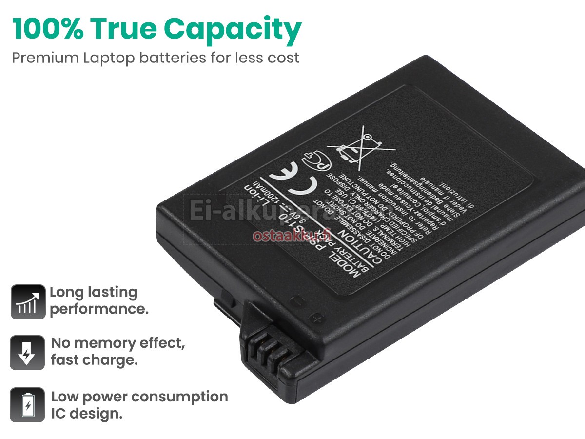 Vaihdettava akku Sony PSP-S110 on uusi. Ehdottomasti ei myydä käytettyjä akku tai uudistettu. Akut ovat valmistettu parhaista solujen ja komponentteja.