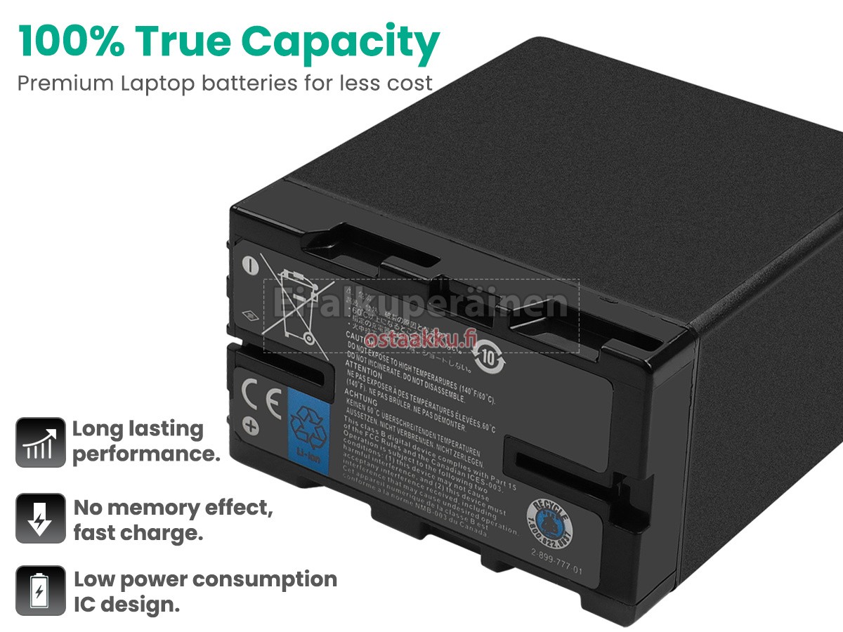 Vaihdettava akku Sony PXW-FS5M2 on uusi. Ehdottomasti ei myydä käytettyjä akku tai uudistettu. Akut ovat valmistettu parhaista solujen ja komponentteja.