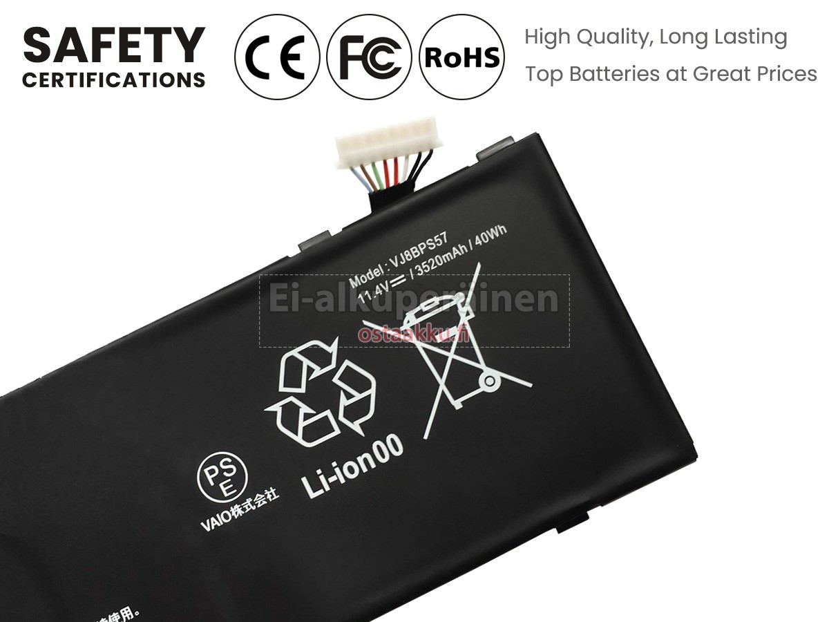 Vaihdettava akku Sony VJ8BPS57 on uusi. Ehdottomasti ei myydä käytettyjä akku tai uudistettu. Akut ovat valmistettu parhaista solujen ja komponentteja.