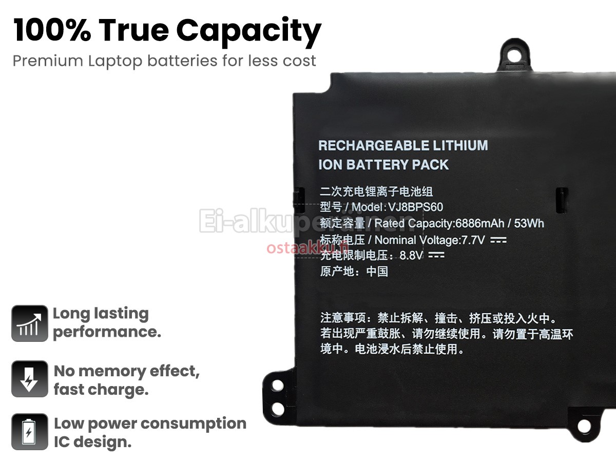 Ei muita eroja, paitsi ilman akku tuotemerkkiä. Kaikki akkuja ovat saatavilla in ostaakku.fi valmiustilassa paristot alkuperäisiä valmistajia. Hyväksyy ytimet ja älykäs soluja, kuten alkuperäisiä valmistajia, joten suorituskyky ja yhteensopivuus Sony VJ8BPS60 akku on samanlainen kuin alkuperäisen akku ja paremmin. Tämä vähentää palkkion brändistä, varmistaa laadun. Monet asiakkaat ajattelevat, että alkuperäinen akku on parempi suorituskyky. Itse asiassa, kannettavani akkuja tuotemerkkejä ovat myös monet kolmannen osapuolen komponentteja (kuten Samsung, LG, jne). Kuten Kannettavani keskusyksikkö, brändin oma tietokoneyritys ei ole sitä kehittänyt.