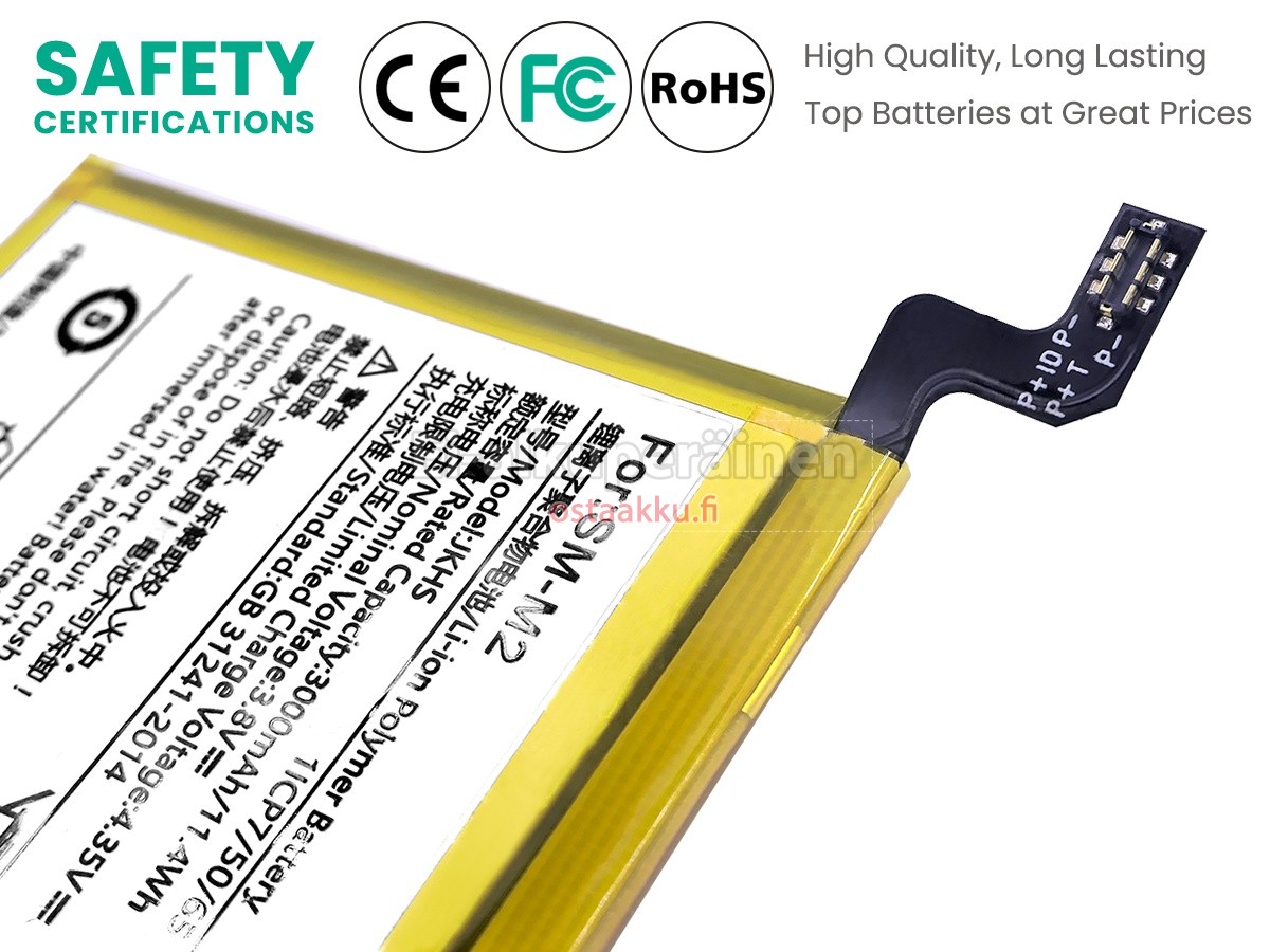 Varaenergian akku uusi Sunmi M2 valmistetaan hienoimmista solujen ja komponentteja. Sunmi M2 akku säädetään in abc.com hyväksytyn UN38.3, RCM, CE, UL, ROHS, ISO9001/ISO9002 ja muiden kansainvälisten sertifiointia. Jotta voidaan minimoida mahdollinen turvallisuusriski ja varmistaa hyvän käyttäjäkokemuksen, tarjotaan erilaisia suojatoimia Sunmi M2 akku kuten lämpösuojaus, virtapiirin suojaus, ylijännitesuojaus, laitteiston suojaus ja kynnyksen lähtövirran.