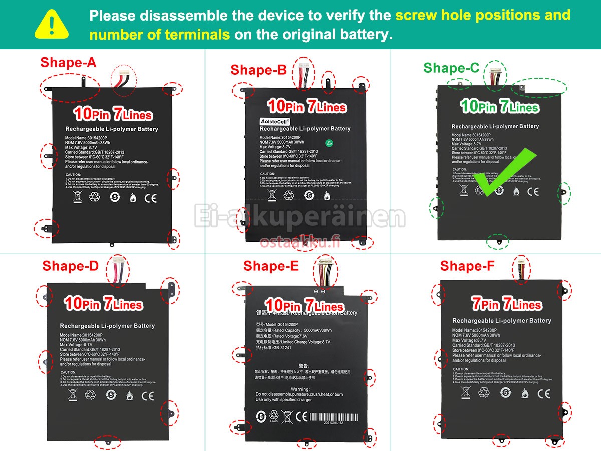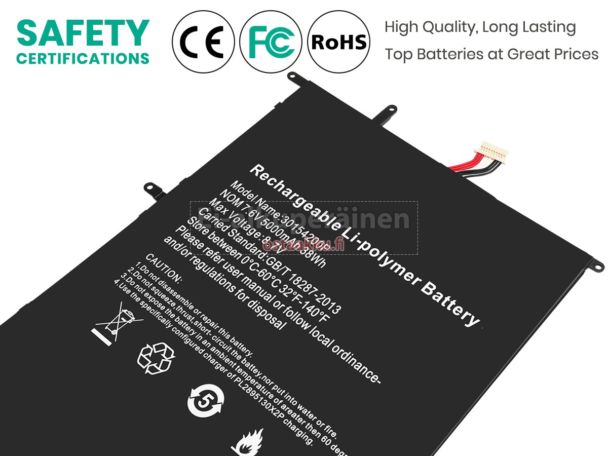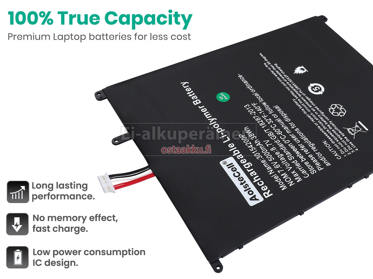Vaihdettava akku Teclast 30154200P on uusi. Ehdottomasti ei myydä käytettyjä akku tai uudistettu. Akut ovat valmistettu parhaista solujen ja komponentteja.