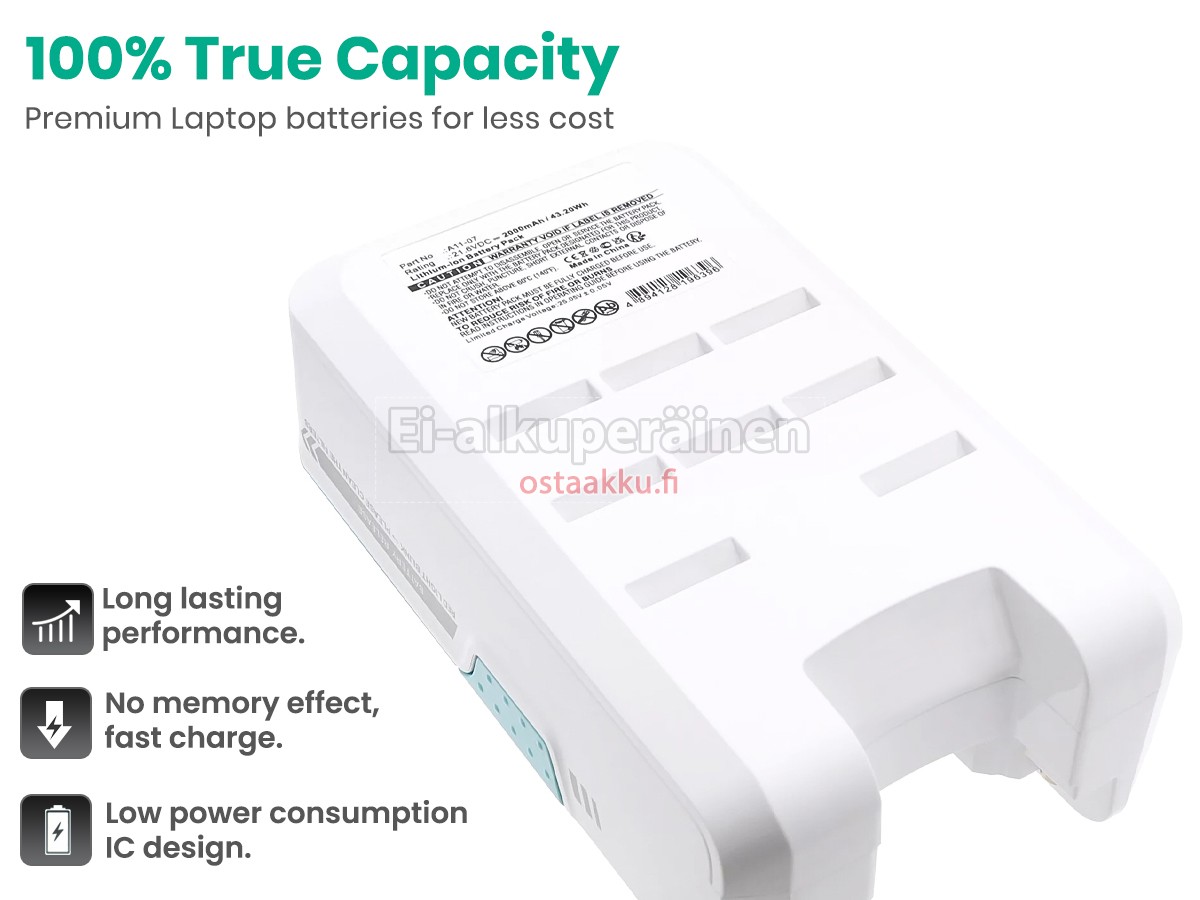 Ei muita eroja, paitsi ilman akku tuotemerkkiä. Kaikki akkuja ovat saatavilla in ostaakku.fi valmiustilassa paristot alkuperäisiä valmistajia. Hyväksyy ytimet ja älykäs soluja, kuten alkuperäisiä valmistajia, joten suorituskyky ja yhteensopivuus Tineco A11-07 akku on samanlainen kuin alkuperäisen akku ja paremmin. Tämä vähentää palkkion brändistä, varmistaa laadun. Monet asiakkaat ajattelevat, että alkuperäinen akku on parempi suorituskyky. Itse asiassa, pölynimurin akkuja tuotemerkkejä ovat myös monet kolmannen osapuolen komponentteja (kuten Samsung, LG, jne). Kuten pölynimurin keskusyksikkö, brändin oma tietokoneyritys ei ole sitä kehittänyt.