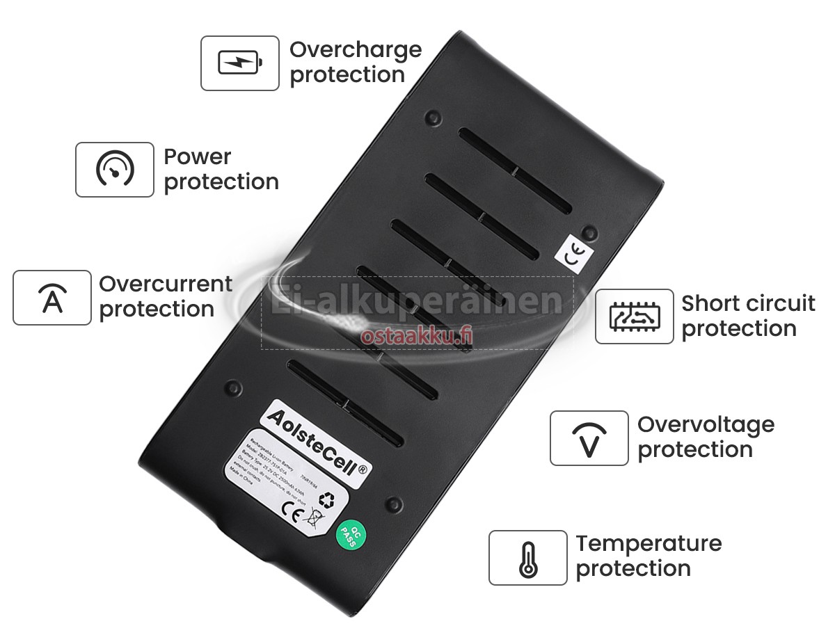 Varaenergian akku uusi Tineco ZB2377-7S1P-01A valmistetaan hienoimmista solujen ja komponentteja. Tineco ZB2377-7S1P-01A akku säädetään in abc.com hyväksytyn UN38.3, RCM, CE, UL, ROHS, ISO9001/ISO9002 ja muiden kansainvälisten sertifiointia. Jotta voidaan minimoida mahdollinen turvallisuusriski ja varmistaa hyvän käyttäjäkokemuksen, tarjotaan erilaisia suojatoimia Tineco ZB2377-7S1P-01A pölynimurin akku kuten lämpösuojaus, virtapiirin suojaus, ylijännitesuojaus, laitteiston suojaus ja kynnyksen lähtövirran.