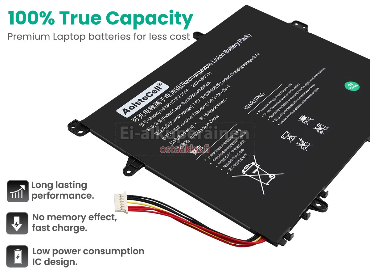 Varaenergian akku uusi TongfangPC U3285131PV-2S1P valmistetaan hienoimmista solujen ja komponentteja. TongfangPC U3285131PV-2S1P akku säädetään in abc.com hyväksytyn UN38.3, RCM, CE, UL, ROHS, ISO9001/ISO9002 ja muiden kansainvälisten sertifiointia. Jotta voidaan minimoida mahdollinen turvallisuusriski ja varmistaa hyvän käyttäjäkokemuksen, tarjotaan erilaisia suojatoimia TongfangPC U3285131PV-2S1P Kannettavani akku kuten lämpösuojaus, virtapiirin suojaus, ylijännitesuojaus, laitteiston suojaus ja kynnyksen lähtövirran.