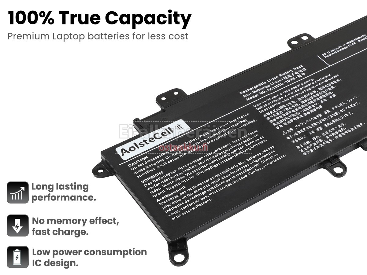 Vaihdettava akku Toshiba PA5353U-1BRS on uusi. Ehdottomasti ei myydä käytettyjä akku tai uudistettu. Akut ovat valmistettu parhaista solujen ja komponentteja.