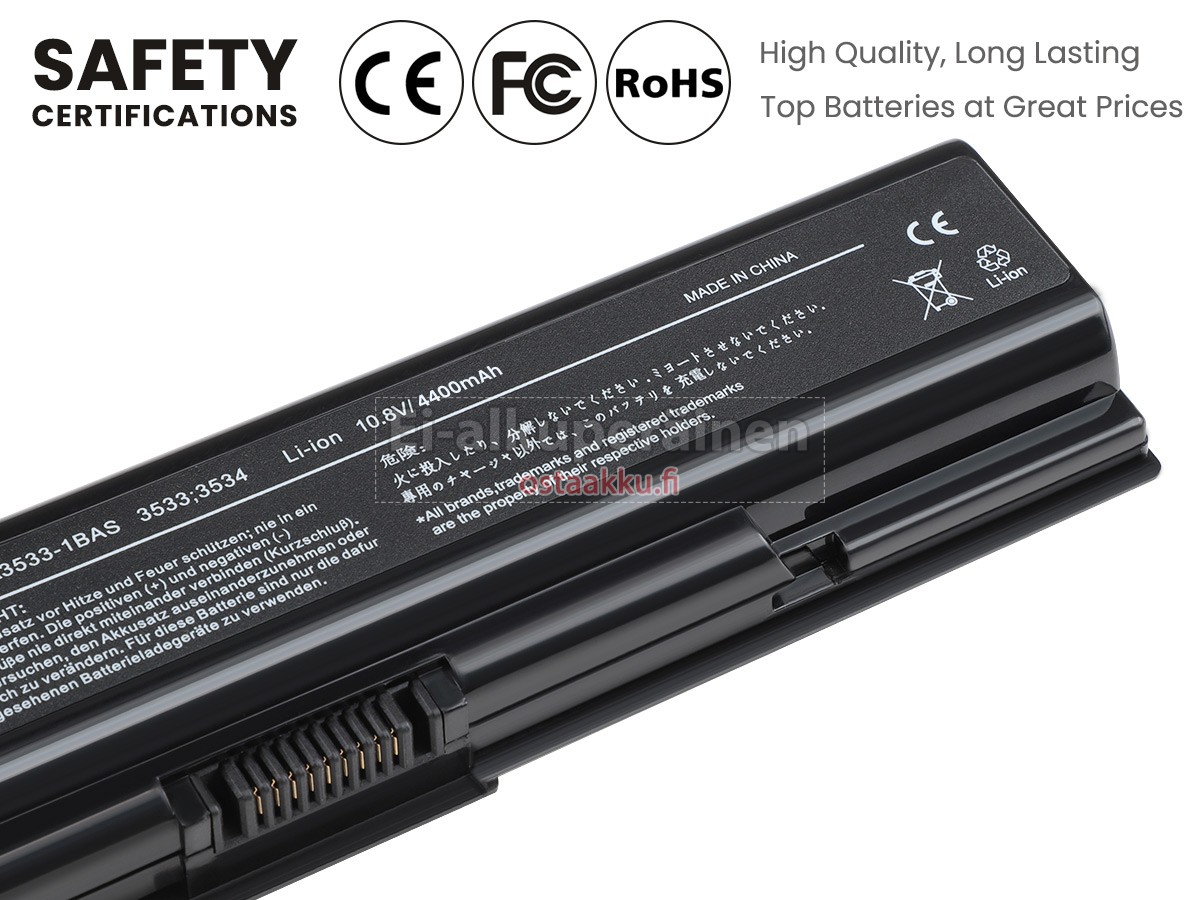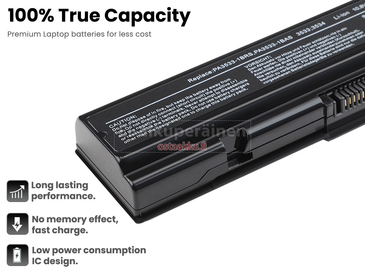 Vaihdettava akku Toshiba Satellite A215-S5808 on uusi. Ehdottomasti ei myydä käytettyjä akku tai uudistettu. Akut ovat valmistettu parhaista solujen ja komponentteja.