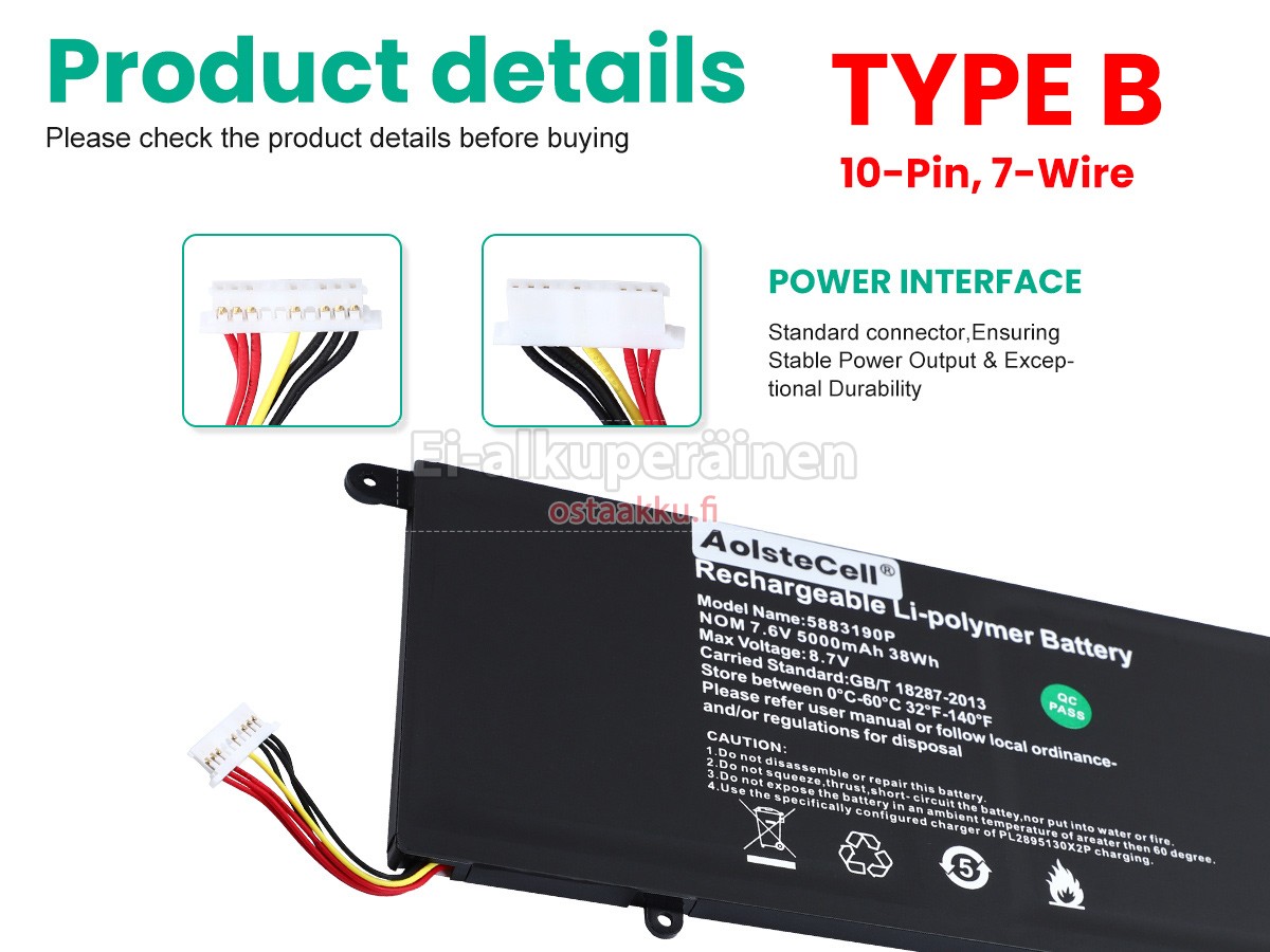 Varaenergian akku uusi Vastking K149U valmistetaan hienoimmista solujen ja komponentteja. Vastking K149U akku säädetään in abc.com hyväksytyn UN38.3, RCM, CE, UL, ROHS, ISO9001/ISO9002 ja muiden kansainvälisten sertifiointia. Jotta voidaan minimoida mahdollinen turvallisuusriski ja varmistaa hyvän käyttäjäkokemuksen, tarjotaan erilaisia suojatoimia Vastking K149U Kannettavani akku kuten lämpösuojaus, virtapiirin suojaus, ylijännitesuojaus, laitteiston suojaus ja kynnyksen lähtövirran.