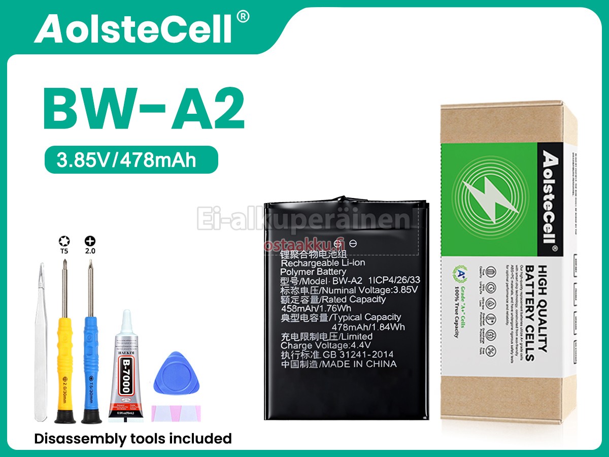 Vaihdettava akku Vivo BW-A2 on uusi. Ehdottomasti ei myydä käytettyjä akku tai uudistettu. Akut ovat valmistettu parhaista solujen ja komponentteja.