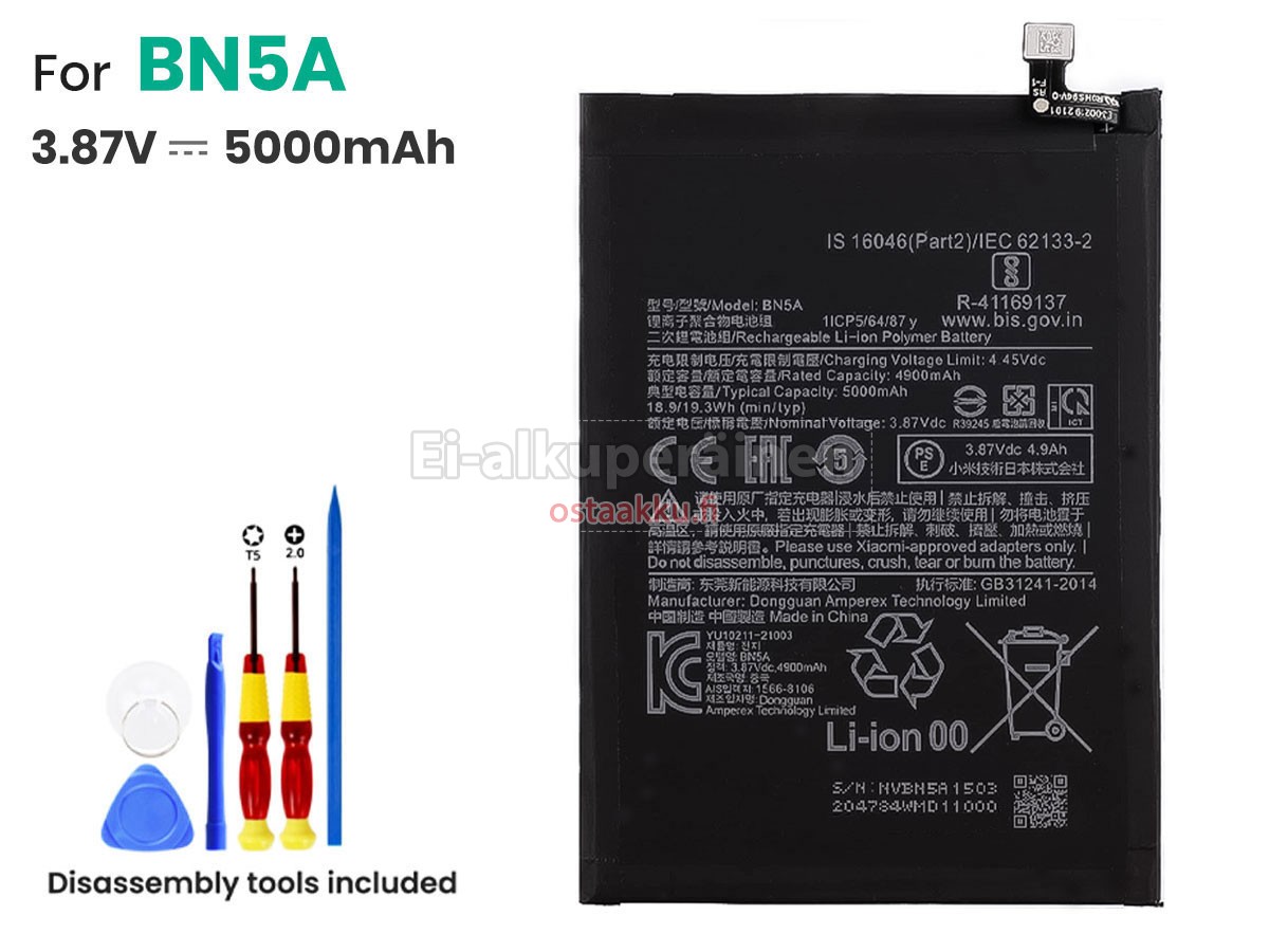 Varaenergian akku uusi XiaoMi BN5A valmistetaan hienoimmista solujen ja komponentteja. XiaoMi BN5A akku säädetään in abc.com hyväksytyn UN38.3, RCM, CE, UL, ROHS, ISO9001/ISO9002 ja muiden kansainvälisten sertifiointia. Jotta voidaan minimoida mahdollinen turvallisuusriski ja varmistaa hyvän käyttäjäkokemuksen, tarjotaan erilaisia suojatoimia XiaoMi BN5A akku kuten lämpösuojaus, virtapiirin suojaus, ylijännitesuojaus, laitteiston suojaus ja kynnyksen lähtövirran.