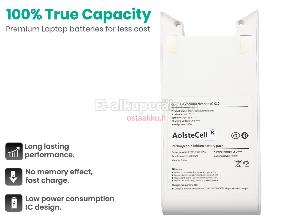 Akku kestoa on yleensä lasketaan lataus ja purkaminen jaksoajat, se on yleensä 400-500 kertaa litium akku. Kun lataat akun jäljellä olevan virran, sinun ei tarvitse pelätä kasvua syklin, koska se lisää heti, kun kun XiaoMi P2017-7S1P-BWA pölynimurin akku kokonaisheitto ja sitten täysin ladatun.