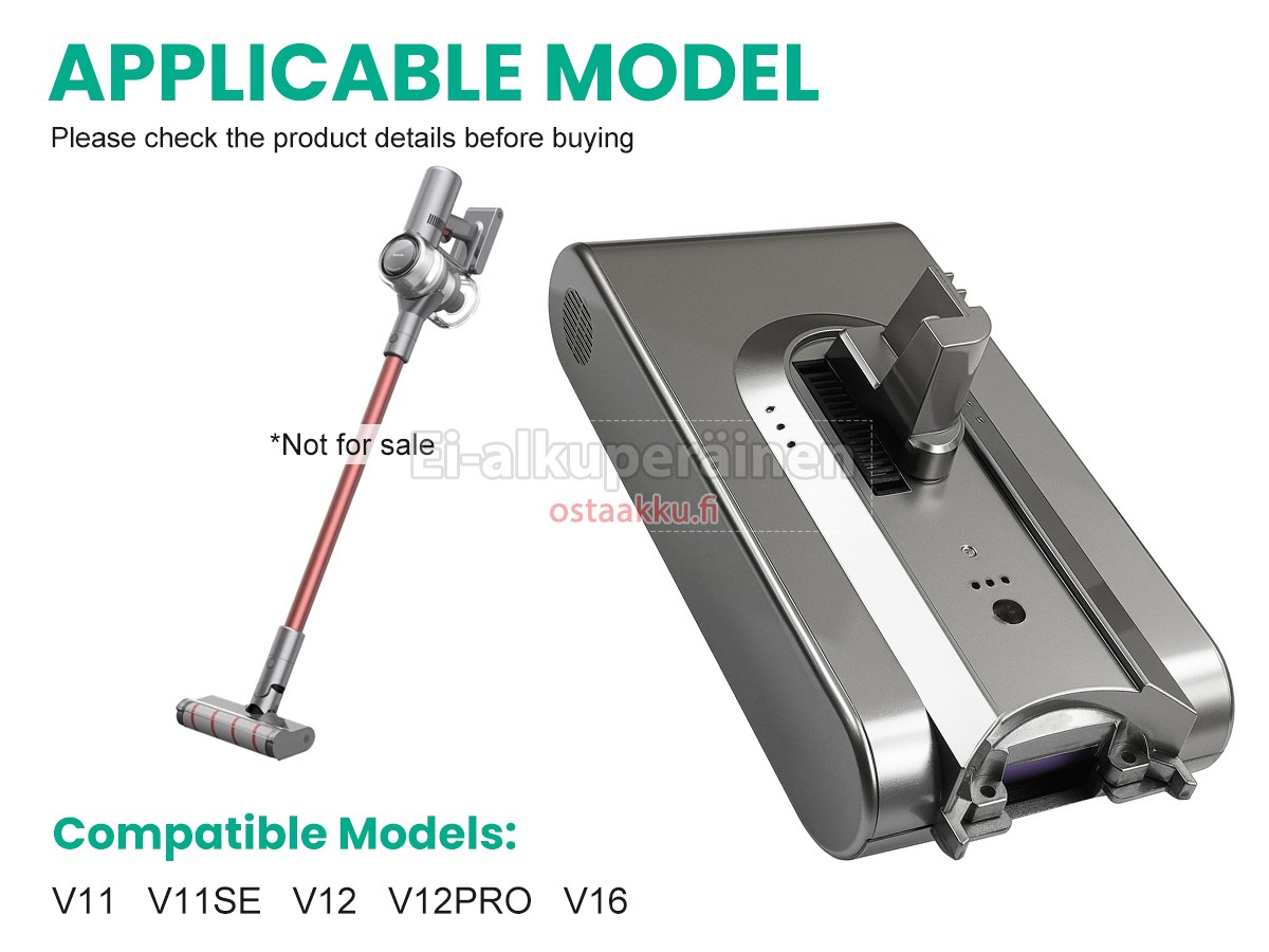 Tarjoamme yhden vuoden takuun pölynimurin akun. Jos ostaja on asennettu oikein akku ja käyttää akku, takuu voimassa.