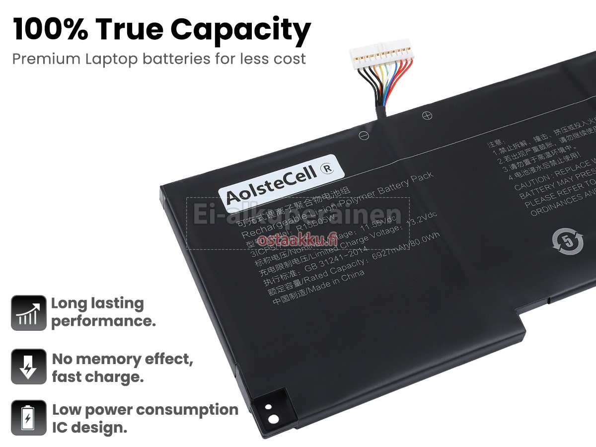 Ei muita eroja, paitsi ilman akku tuotemerkkiä. Kaikki akkuja ovat saatavilla in ostaakku.fi valmiustilassa paristot alkuperäisiä valmistajia. Hyväksyy ytimet ja älykäs soluja, kuten alkuperäisiä valmistajia, joten suorituskyky ja yhteensopivuus XiaoMi R15B05W akku on samanlainen kuin alkuperäisen akku ja paremmin. Tämä vähentää palkkion brändistä, varmistaa laadun. Monet asiakkaat ajattelevat, että alkuperäinen akku on parempi suorituskyky. Itse asiassa, kannettavani akkuja tuotemerkkejä ovat myös monet kolmannen osapuolen komponentteja (kuten Samsung, LG, jne). Kuten Kannettavani keskusyksikkö, brändin oma tietokoneyritys ei ole sitä kehittänyt.
